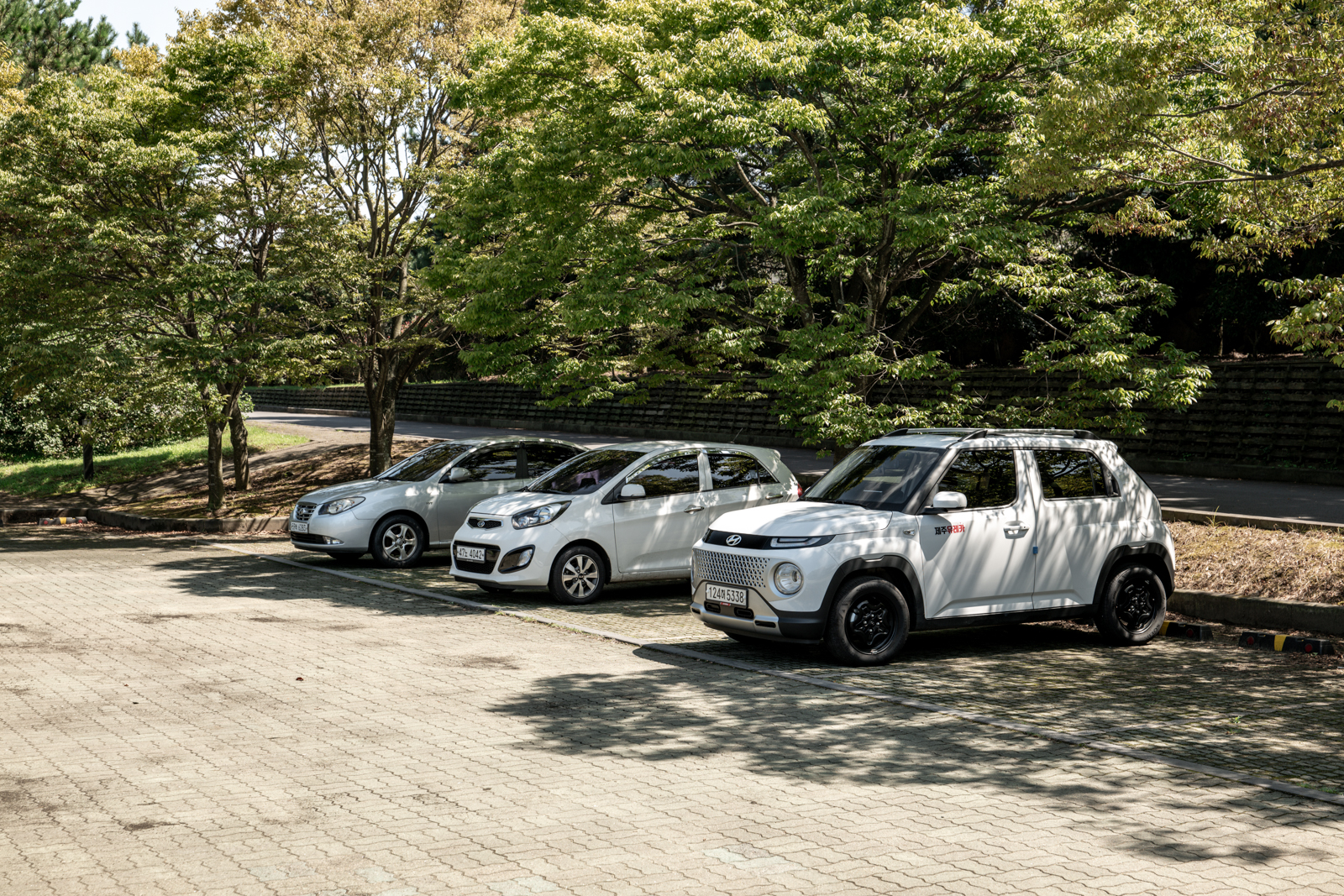 바로 옆에 있는 카니발과 비교하면 훨씬 아담한 크기의 경차이기에 2~3인 여행객이 이용하기에 좋고 경차답게 연비가 뛰어나 요즘처럼 휘발유값이 비쌀 때 사용하기 좋다.