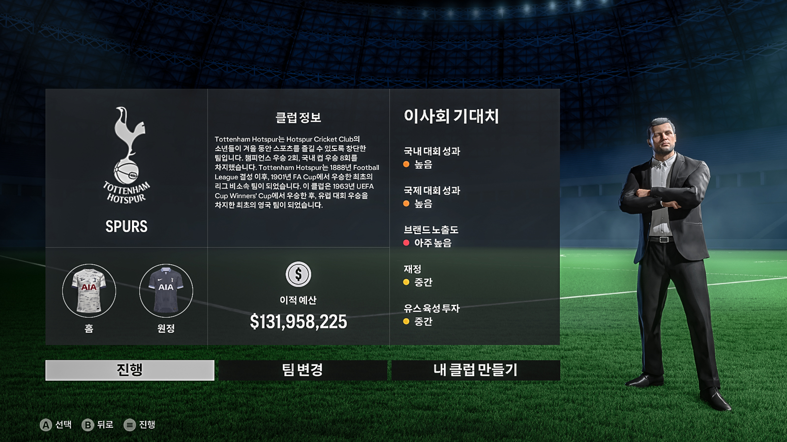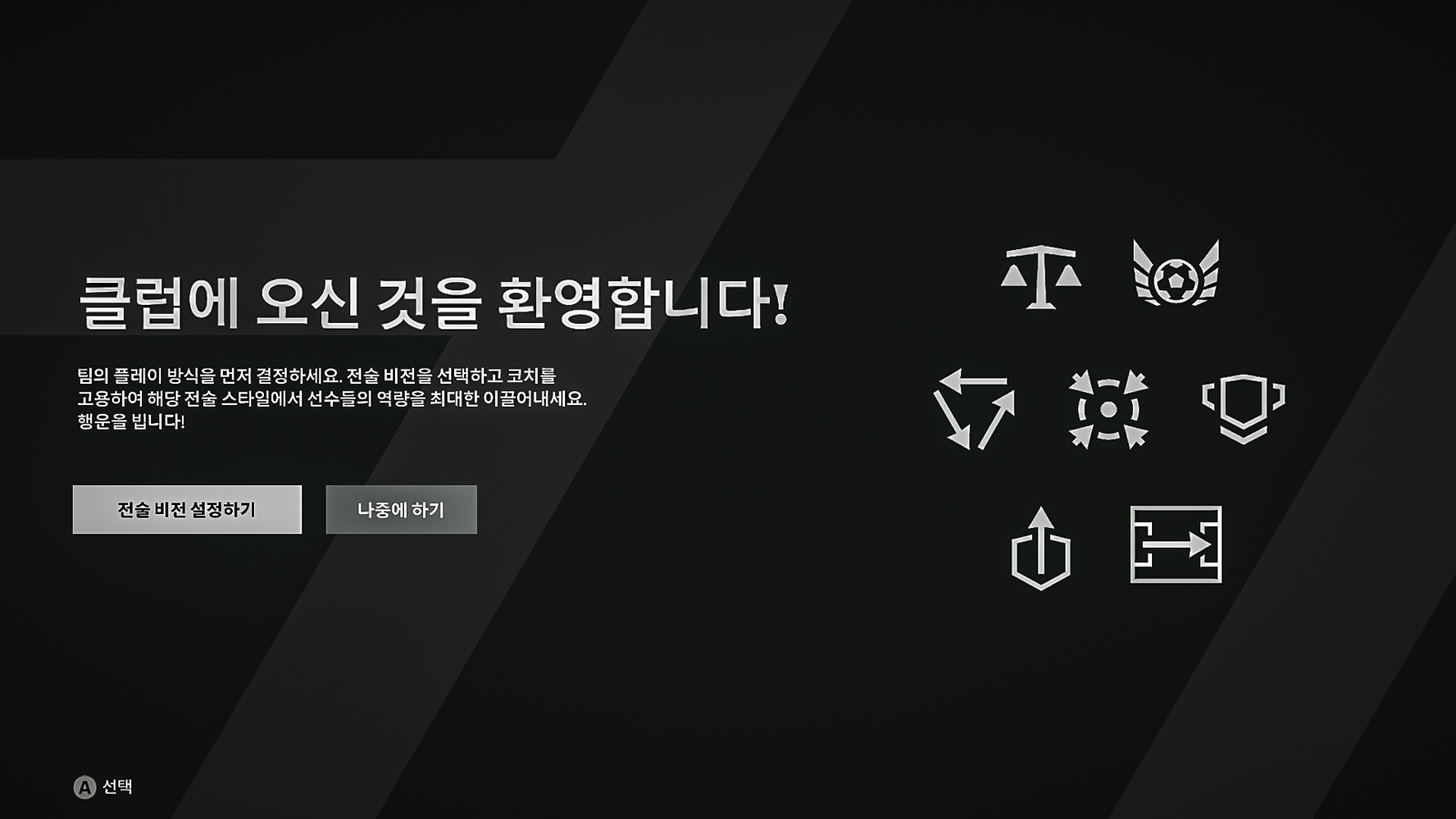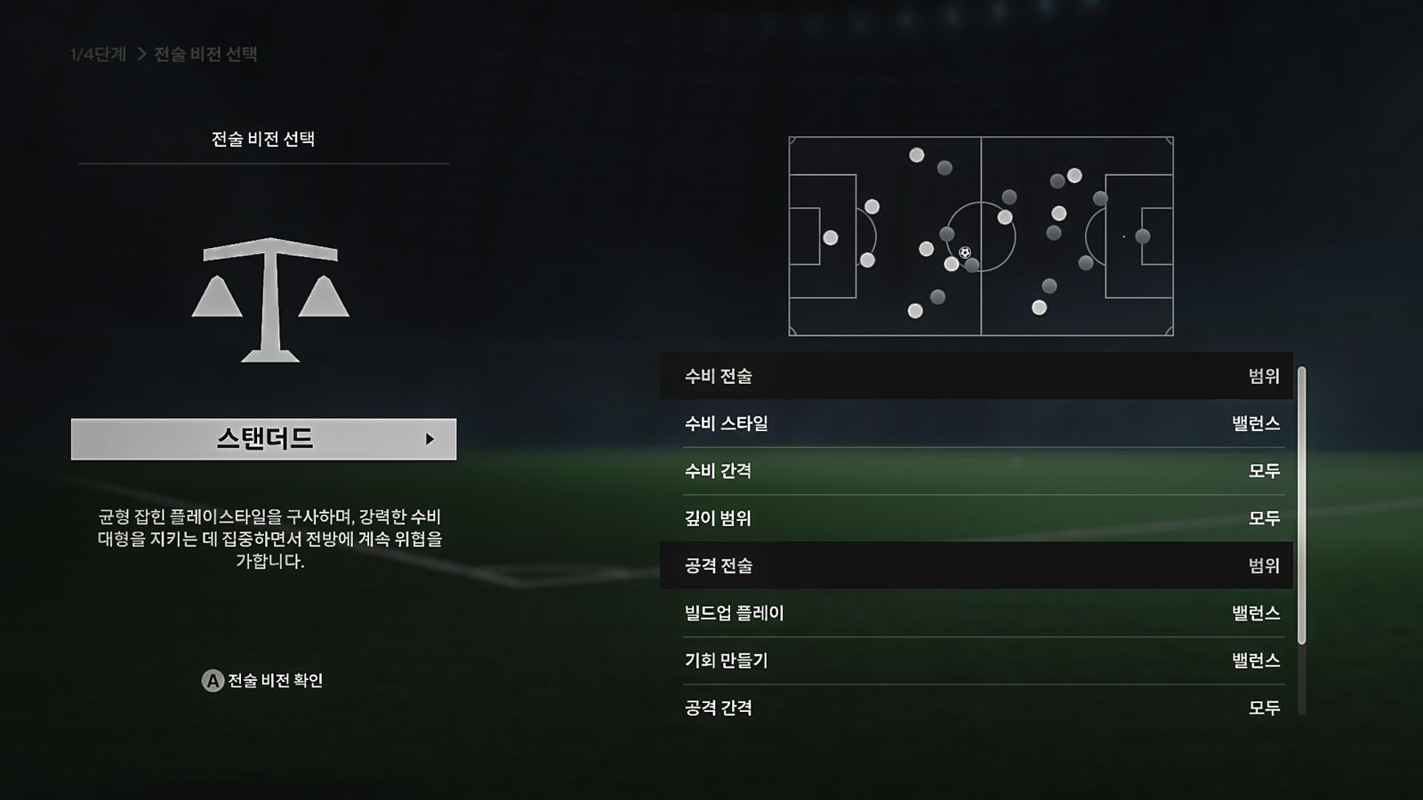 이번 축구 게임에서는 기존에 없었던 전술 비전 선택도 할 수 있다. 스탠다드 모드부터 총 5개의 전술을 선택해 커리어를 키울 수 있다는 점이 특징이다.