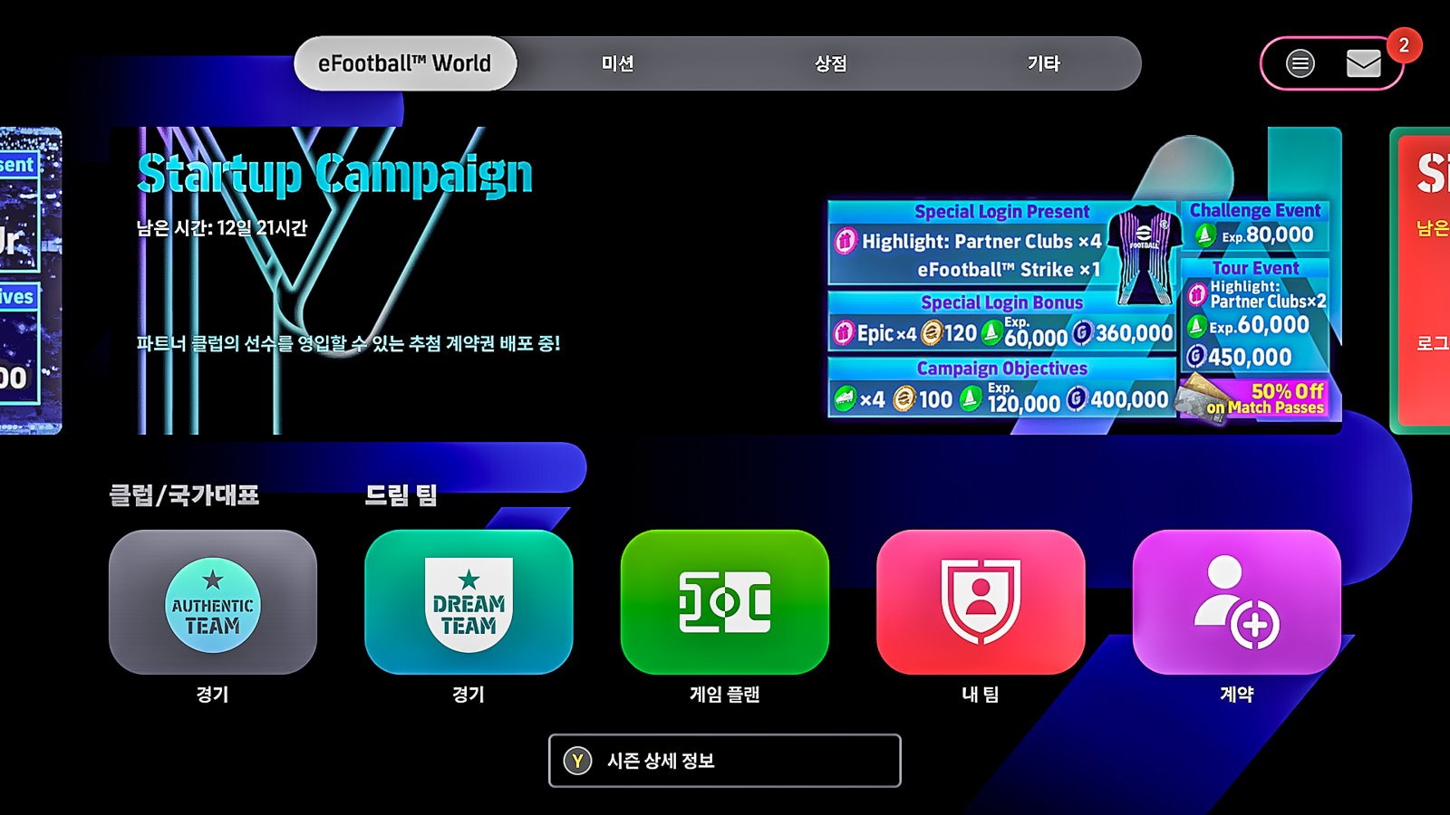 FC24와 다르게 커리어모드나 볼타모드 없이 오직 eFootBall World 모드로 얼티메이트 팀을 육성해야 하지만 과금 요소가 크게 없고 무과금으로도 충분히 할 수 있다.