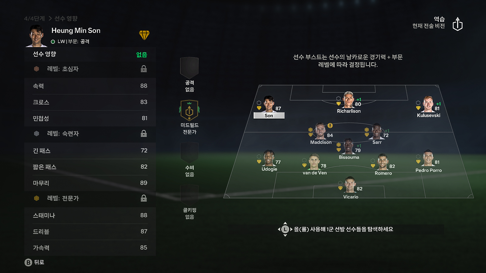 또한 EA FC24 커리어모드에서는 코치 기능이 더욱 향상되었으며 선수마다 날카로운 경기력 부분을 키울 수 있다. 손흥민 선수와 같이 이미 완성된 선수보단 유망주를 키우면 더욱 재밌을 것 같다.