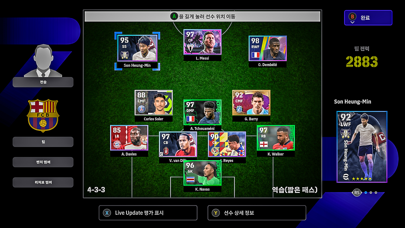 지난 2023년 9월 7일에 이풋볼 2024 출시 후 현재까지 플레이를 해서 팀 전력 2800까지 만들었다. 시작하면 메시를 받을 수 있고 어제자 업데이트를 통해 네이마르 선수를 무료로 사용할 수 있다. 이외에 선수 육성을 통해 대부분의 선수의 오버롤을 손쉽게 올릴 수 있었다.