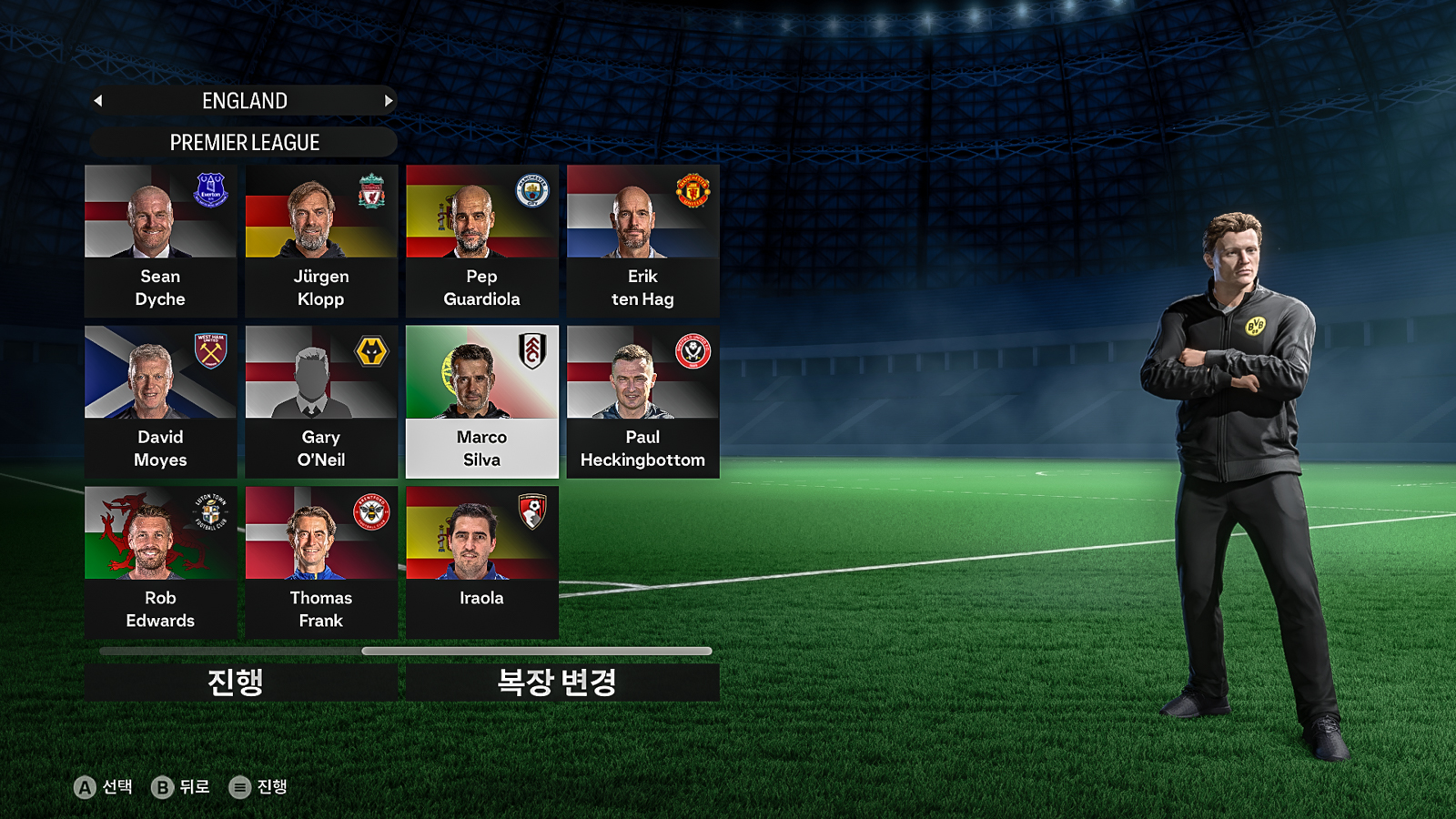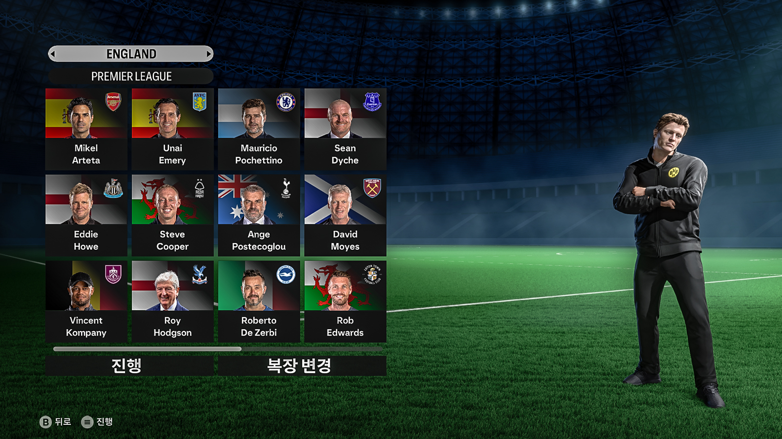 FC 24(피파24) 체험판에서도 커리어 모드를 할 수 있으며 실제 프리미어리그 감독과 똑같은 모습으로 완성도를 더했다. 감독은 실제 감독을 사용하거나 직접 만들 수 있으며 복장 또한 변경이 가능하다.