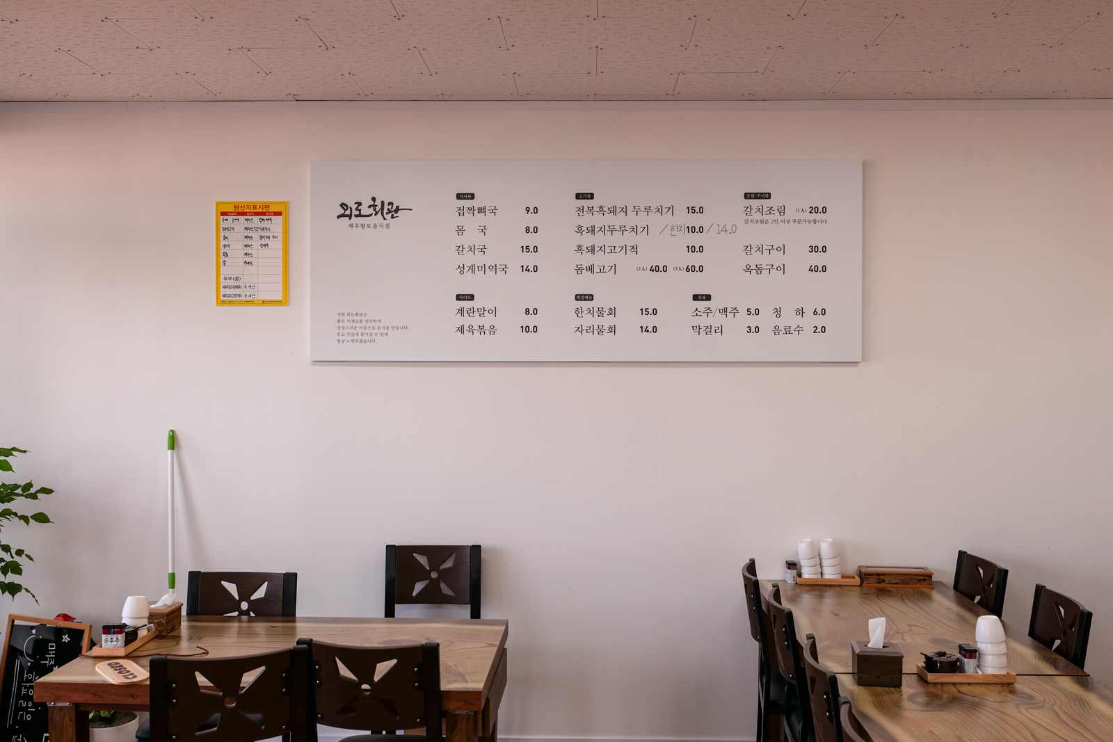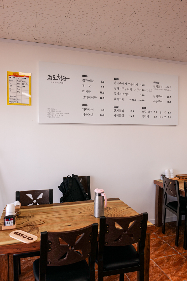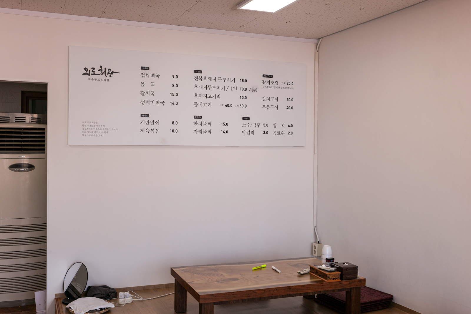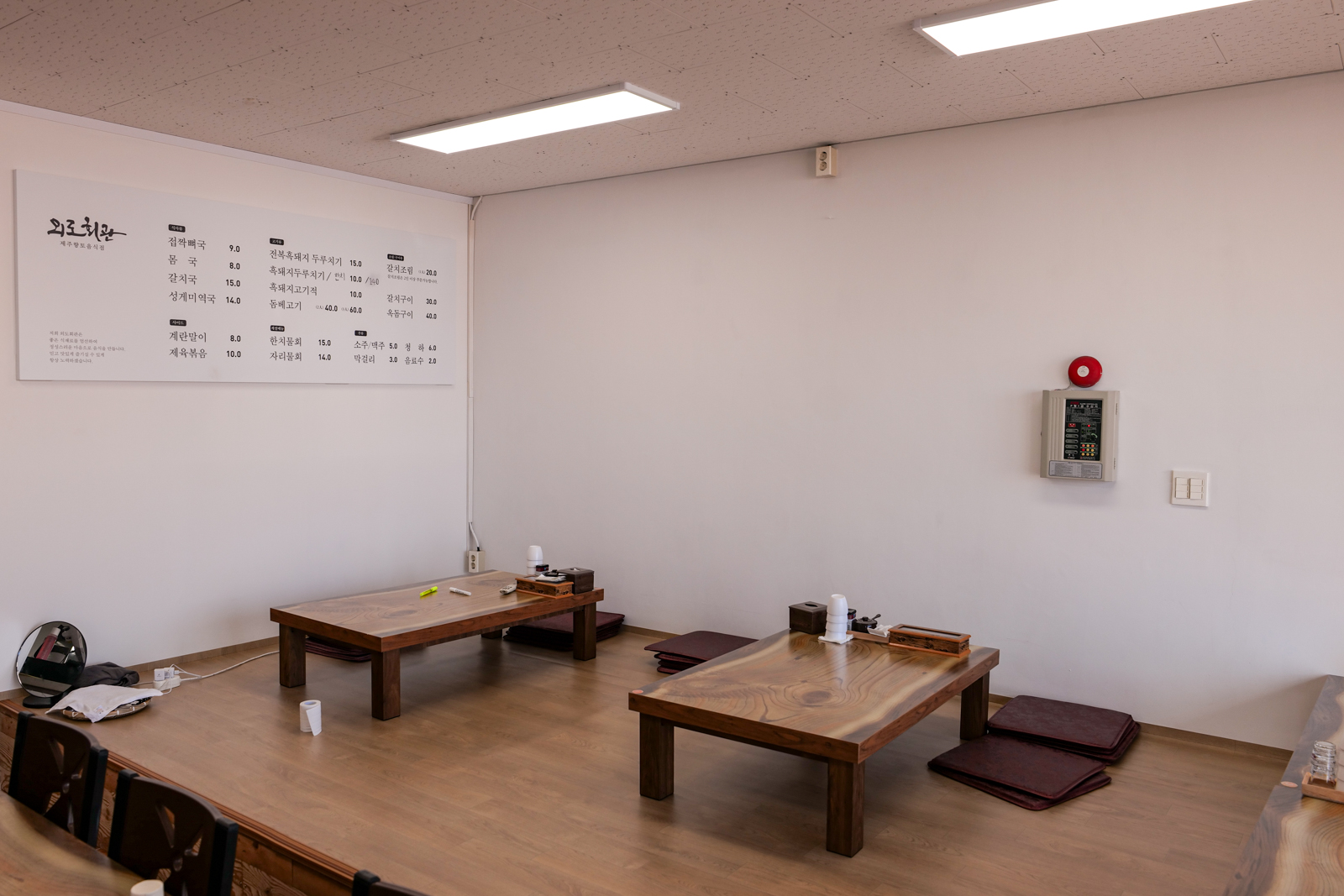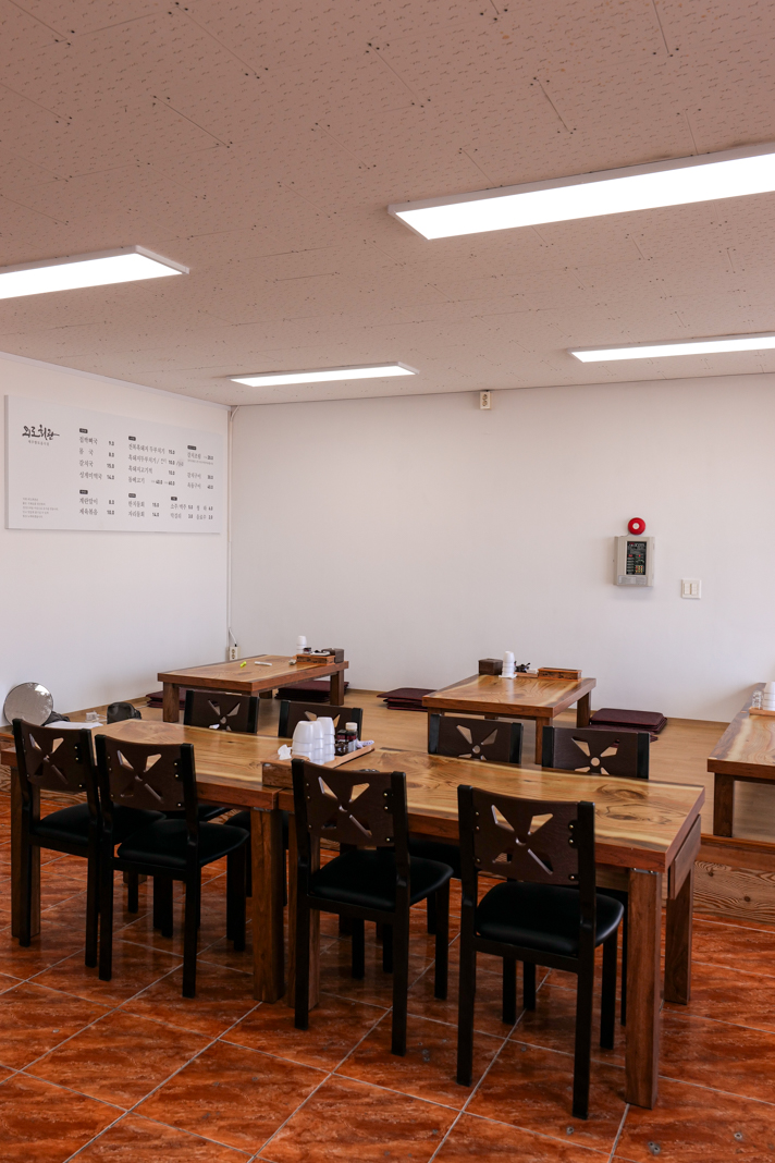 제주 외도 맛집 외도회관은 오픈한 지 얼마 되지 않은 식당으로 내부는 전체적으로 깔끔하고 청결했다. 여러 대의 테이블이 마련되어 있었고 편하게 앉기 좋은 좌식테이블 자리도 있었다.