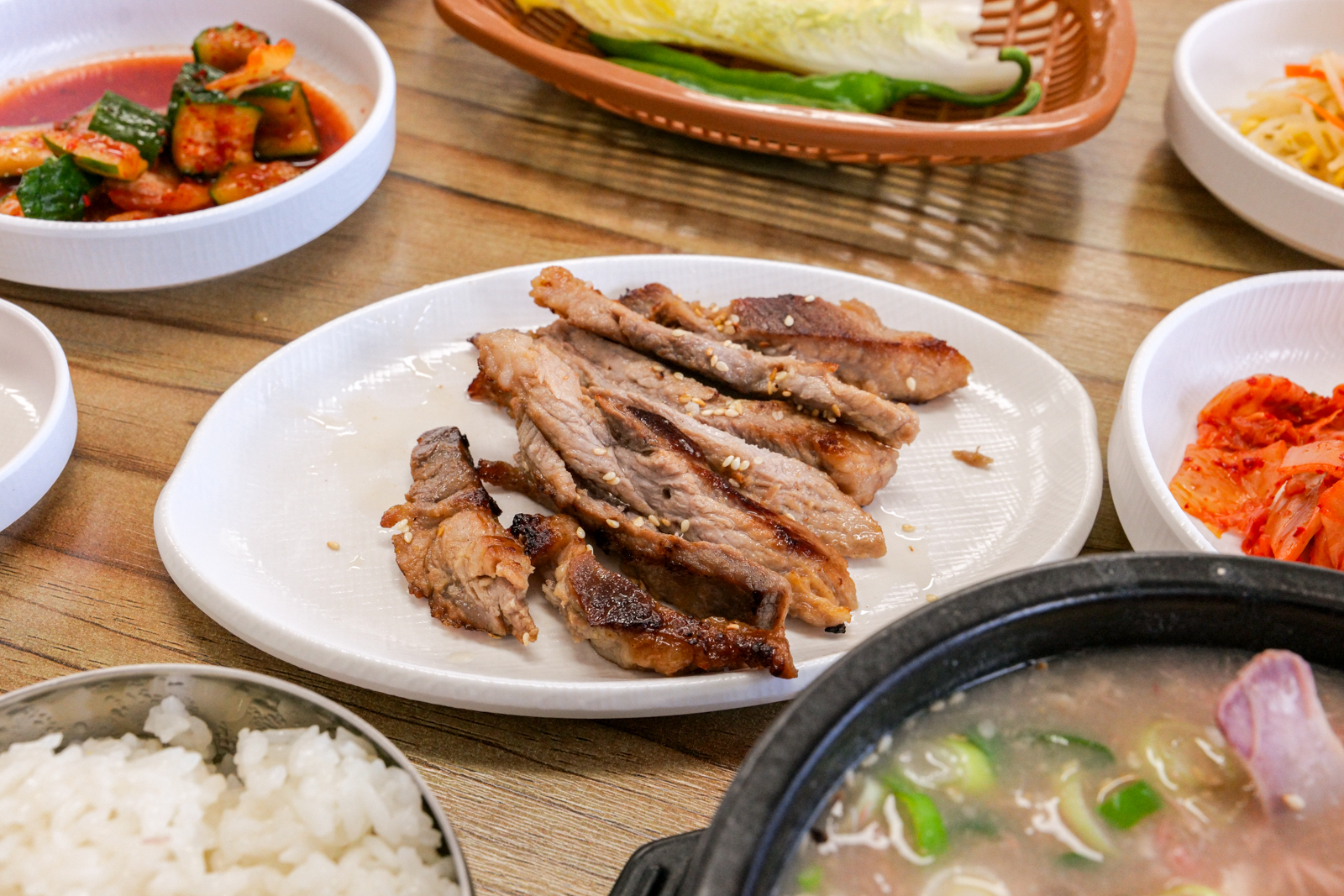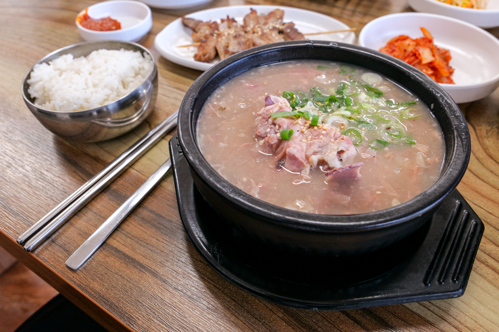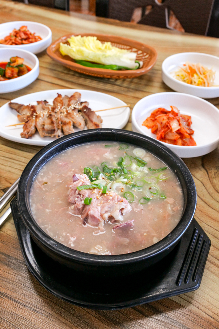 돼지머리와 갈비뼈 사이에 있는 뼈로 만든 접짝뼈국은 진한 국물에 돼지고기가 듬뿍 들어 있었고 추가로 주문시켜서 먹었던 흑돼지 고기적도 담백하게 먹을 수 있었는데 수영장이 있어 인기가 많은 숙소인 제주그라벨호텔 바로 옆에 위치해 있기에 제주 서쪽이나 외도동에서 갈만한 맛집을 찾는 분들에게 추천해주고 싶다.