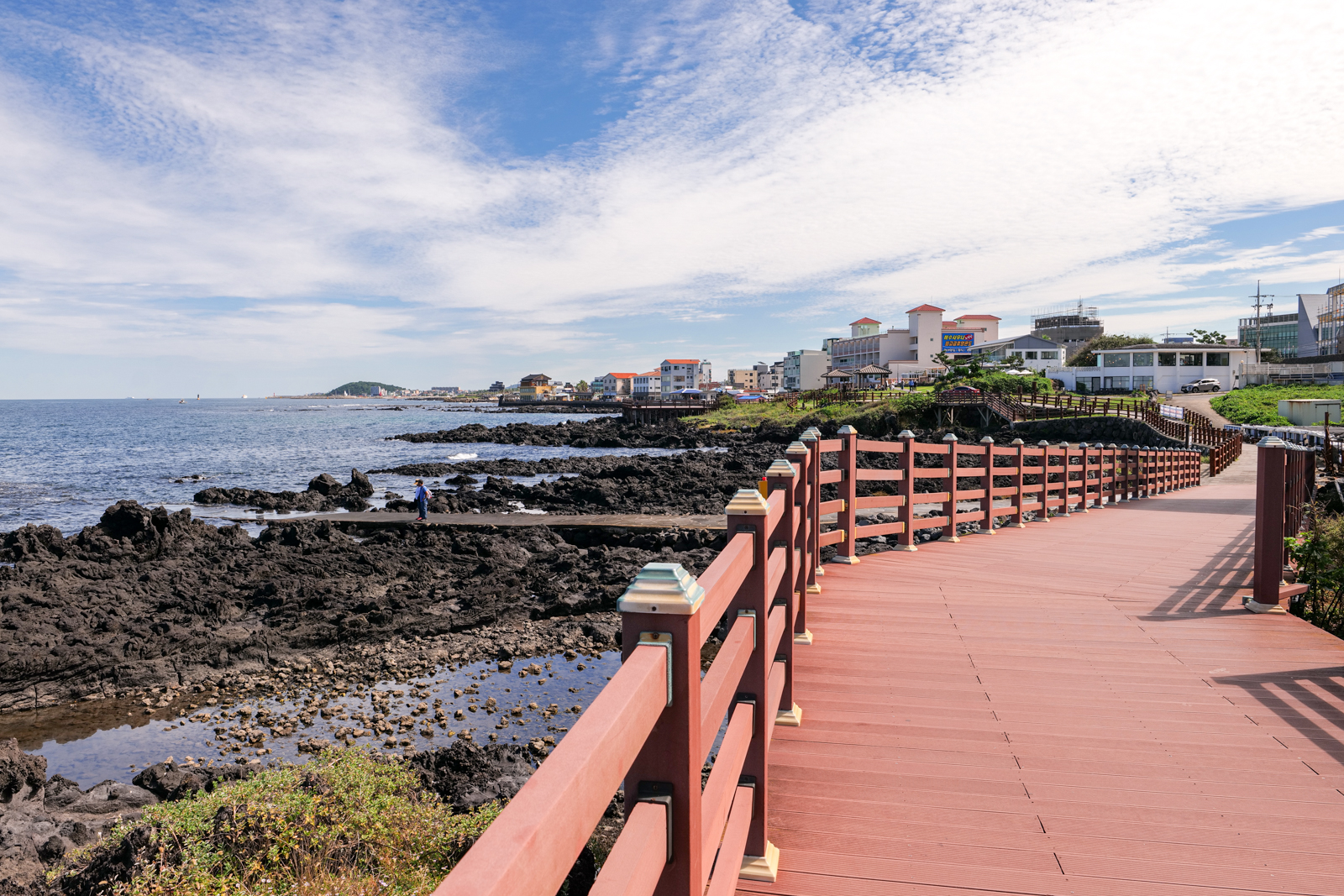 제주 연대마을 입구에서 외도포구로 가는 길은 데크길이 조성되어 있어 안전하게 산책을 할 수 있었다. 바로 옆으로 바다가 보이고 주변에 여러 베이커리 카페가 많아 가족여행이나 데이트 장소로 선택하기 좋은 곳이다.