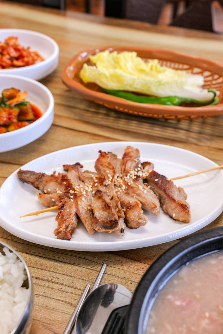 제주 접짝뼈국과 함께 주문했던 고기적 또한 흑돼지라 그런지 부드러우면서 쫄깃쫄깃했고 느끼함없이 깔끔함을 자랑했다. 총 일곱 조각으로 혼밥을 하기에는 생각했던 것보다 양이 많아 배불렀다.