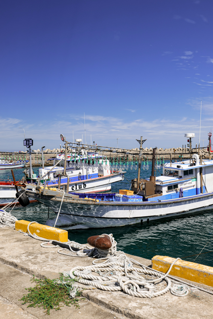 카메라를 들고 사진을 찍으면서 정박된 어선도 촬영했다. 아래 바닷물로 반사되는 어선이 그림처럼 예쁜 결과물을 보여줘서 사진으로 찍길 잘했다는 생각이 절로 들었다.