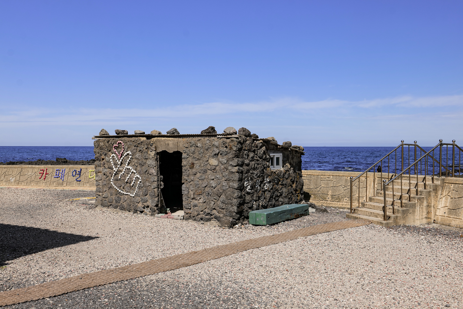 또한 탈의장이라고 적힌 오래된 돌담 건물이 있는 카페 연대도 이날 처음 만났다. 외도339와 마찬가지로 반려견 동반이 가능한 제주 외도 카페로 시그니처 음료와 커피가 있다고 하는데 다음에 다시 제주 해변을 찾으면 들려봐야겠다.
