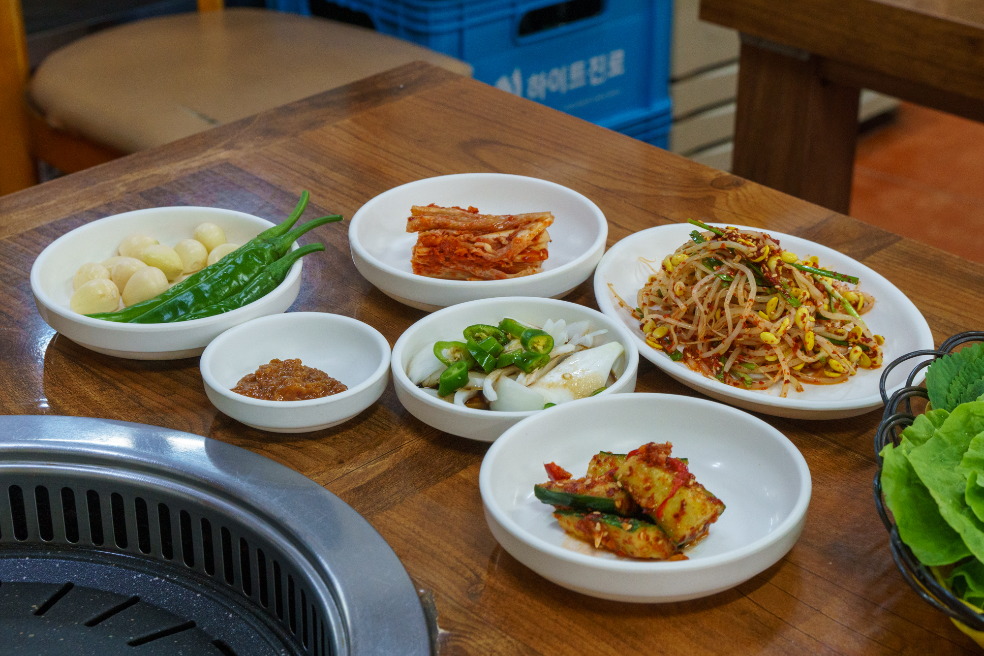제주 현지인 추천 맛집 고씨네막창을 오랜만에 찾았던 이날엔 소곱창모듬, 돼지막창, 오겹살, 차돌박이를 차례대로 주문했다. 메뉴 주문 후 잠시 기다리면 이곳에서 직접 만든 밑반찬이 나오는데 콩나물무침과 오이무침은 상추쌈으로 고기와 곁들여 먹기 좋다.