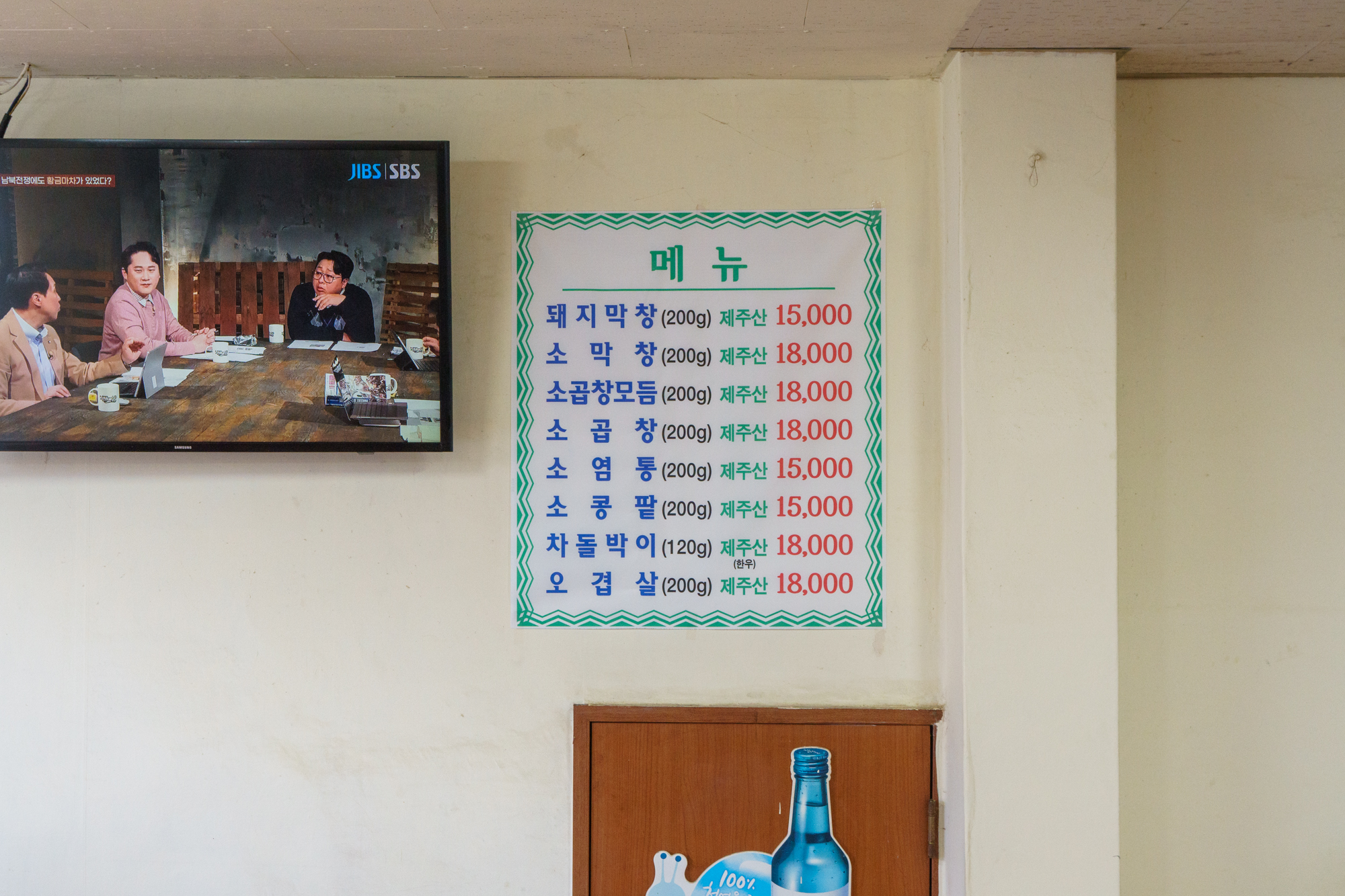 약 6~7년 전에 처음 방문했던 제주 현지인 추천 맛집으로 언제나 깔끔한 위생 상태를 자랑한다. 한때 막창과 곱창이 예능 프로그램과 유튜브 먹방으로 붐이 일면서 이곳 또한 웨이팅을 해야 할 만큼 인기가 많았는데 현재는 여행객보다 도민이 자주 찾는 식당이다.