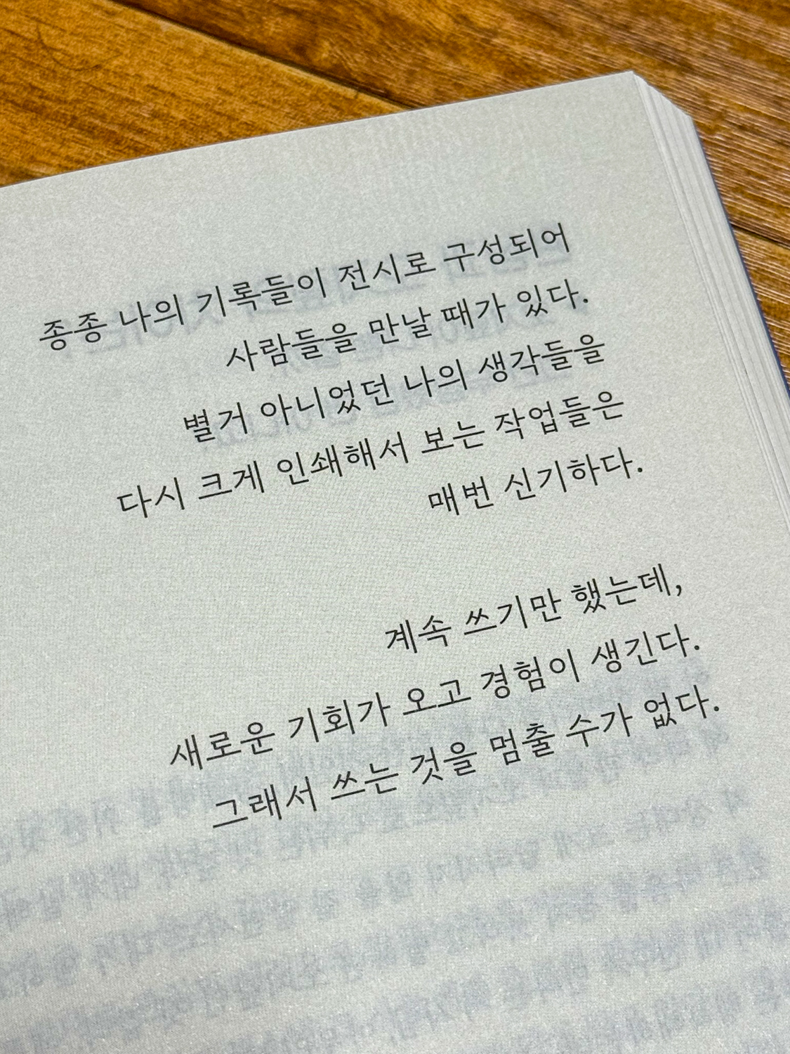 전작 '기록의 쓸모', '별게 다 영감', '일놀놀일'과 비교하면 비슷한 내용이 담겨 있지만 이에 더해 새로운 생각과 최근에 있었던 사건과 결혼 생활 등을 담아내어 하나의 성장 일기를 읽는 듯한 느낌도 주었다.