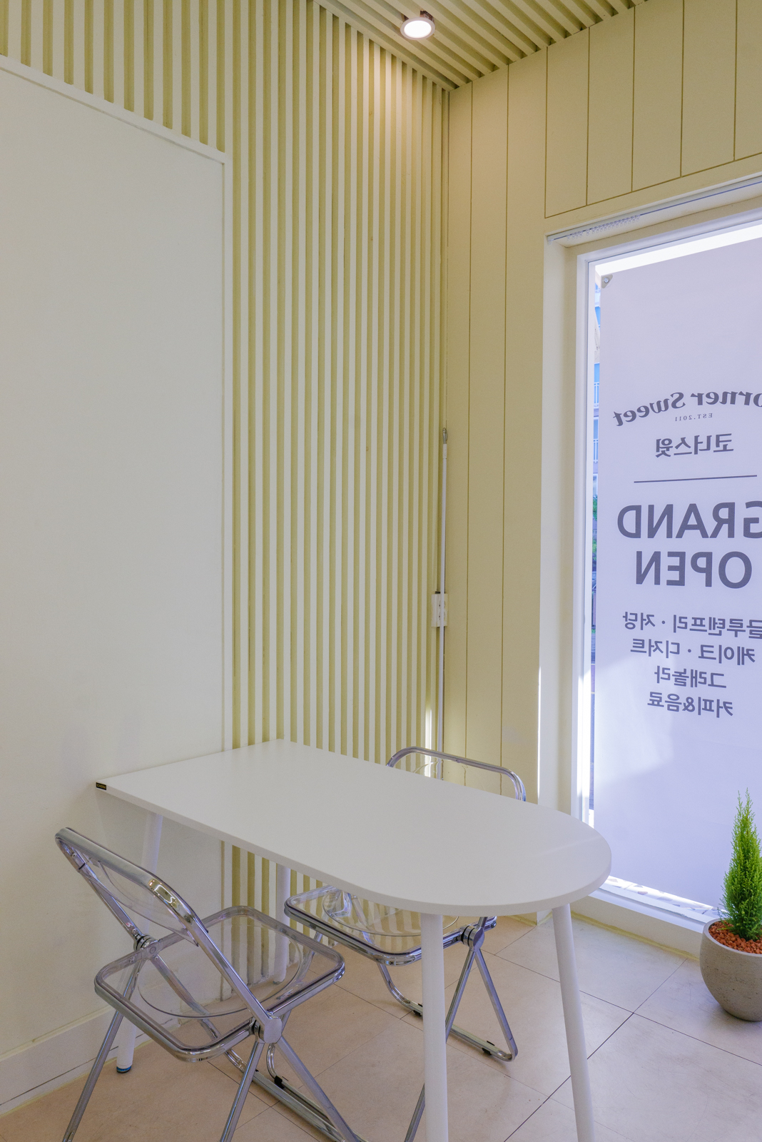 2~4인이 함께 앉을 수 있는 테이블로 여러 명이 가기에도 좋았고 내부 곳곳엔 초록색 꽃화분을 두어 화사했으며 창가 자리에서 야외 경치를 바라보며 책을 읽거나 공부를 하기에도 좋은 카페라 할 수 있었다.