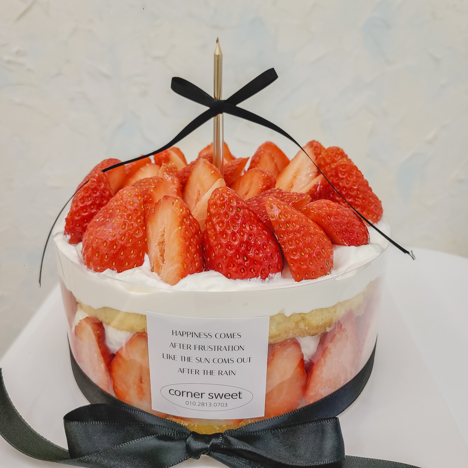 제주 아라동 카페 코너스윗에서 주문한 케이크는 총 두 개로 하나는 딸기가 위, 아래로 가득 담긴 생크림 케이크이며 두 번째는 앞서 언급했던 크리스마스트리에 산타가 있는 케이크다.