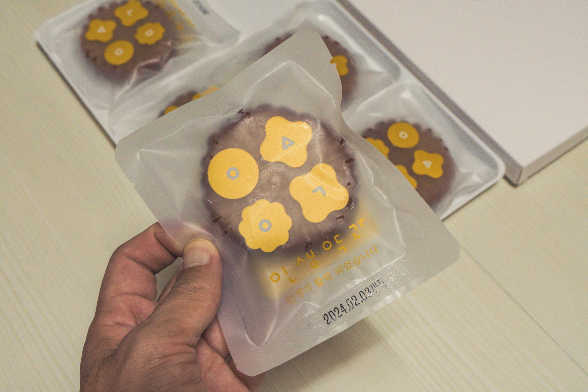 지인에게 줄 제주공항 기념품으로 인생약과를 구매한 후 남은 1박스는 내가 직접 먹어봤다. 박스 안에는 6개의 약과가 따로 담겨 있었고 유통기한도 넉넉해 하나를 구매해도 오랫동안 먹을 수 있다.