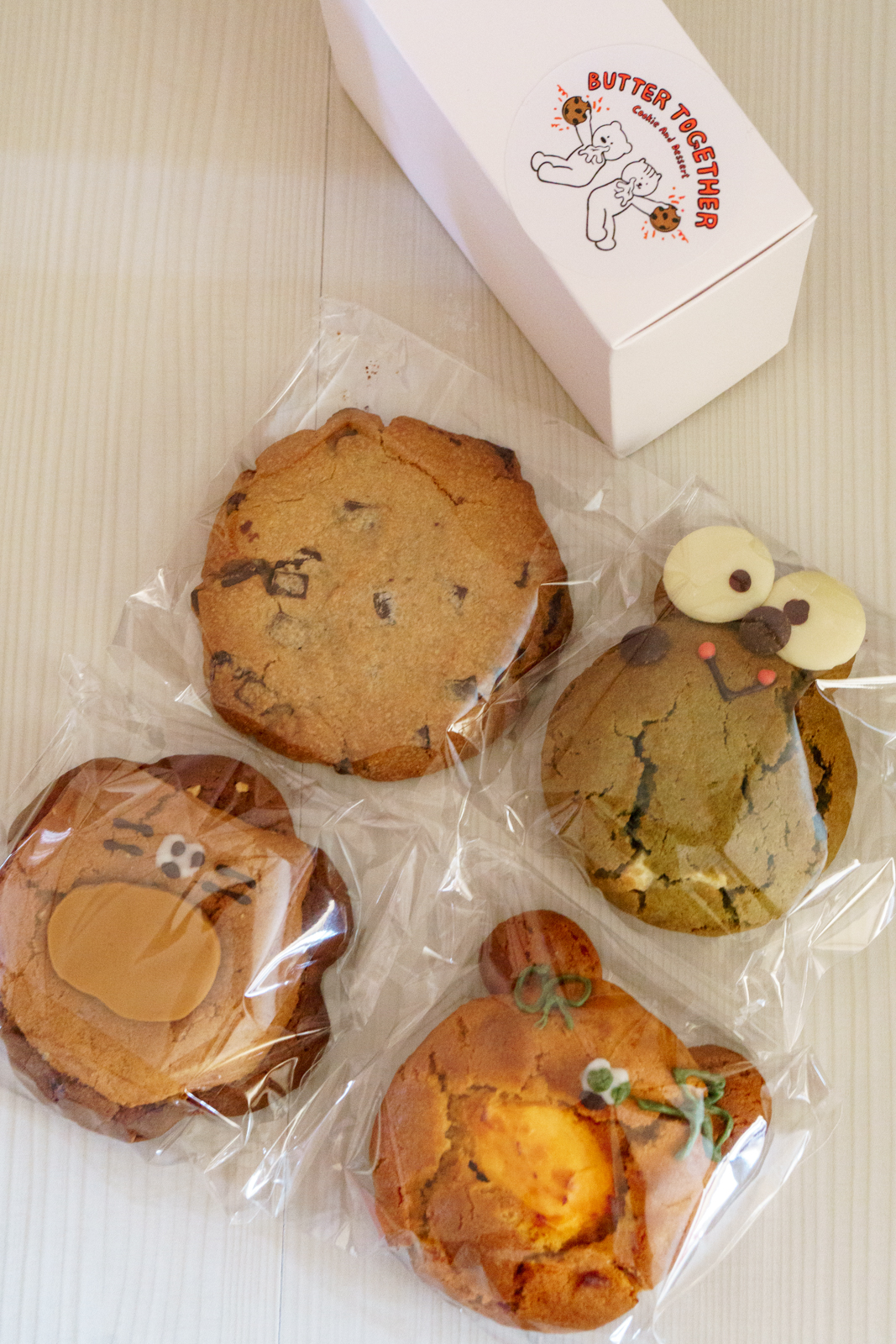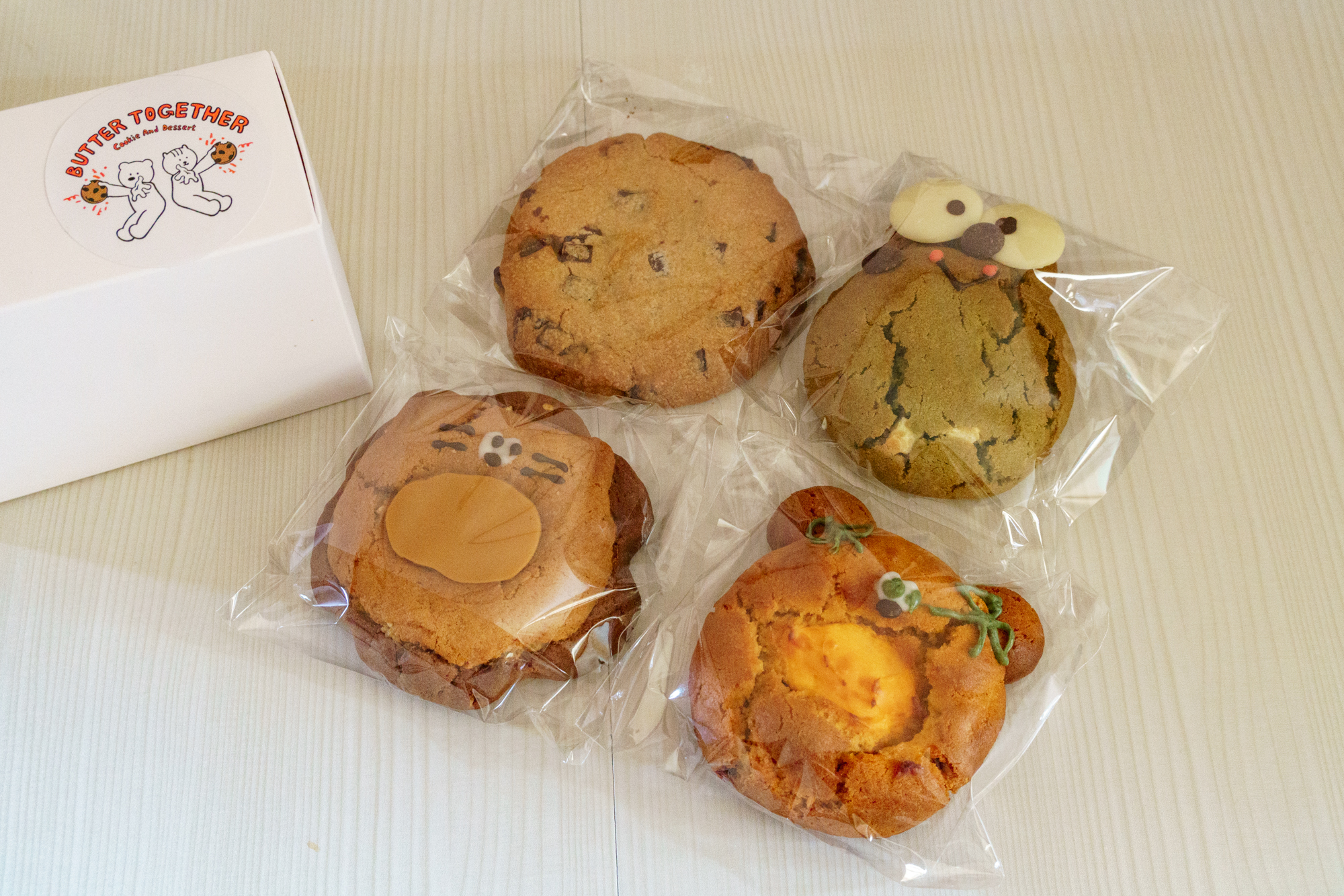 여러 종류의 쿠키로 구성된 버터투게더는 반죽 무게만 130g으로 다른 쿠키 전문점과 비교하면 더욱 묵직하면서 크기가 크고 직접 반죽하여 차별화를 뒀으며, 구디백 포장으로 선물용으로 선택하기에도 좋았다.