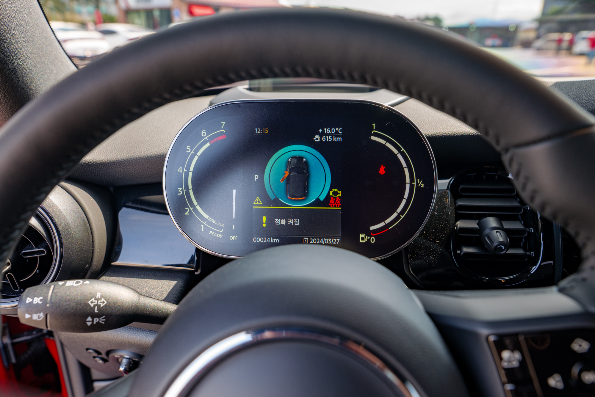 주행거리 24km밖에 타지 않은 신형 휘발유 차량으로 기름은 600km나 탈 수 있을 만큼 넉넉하게 담겨 있었다. 2024 미니 컨버터블을 이날 처음 타봤지만 일반 자동차와 마찬가지로 주행이나 작동 방법이 똑같기에 불편하지 않았다.