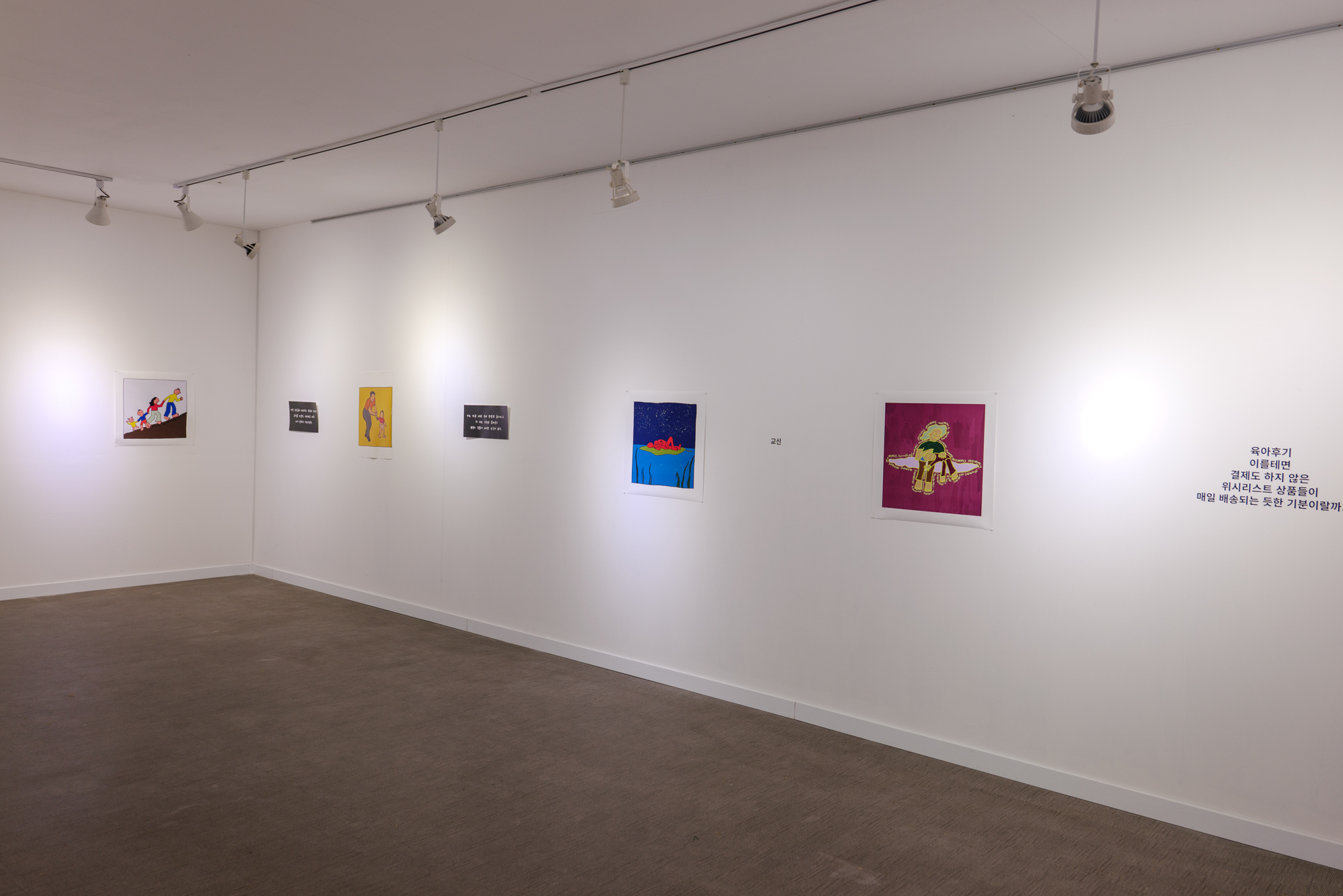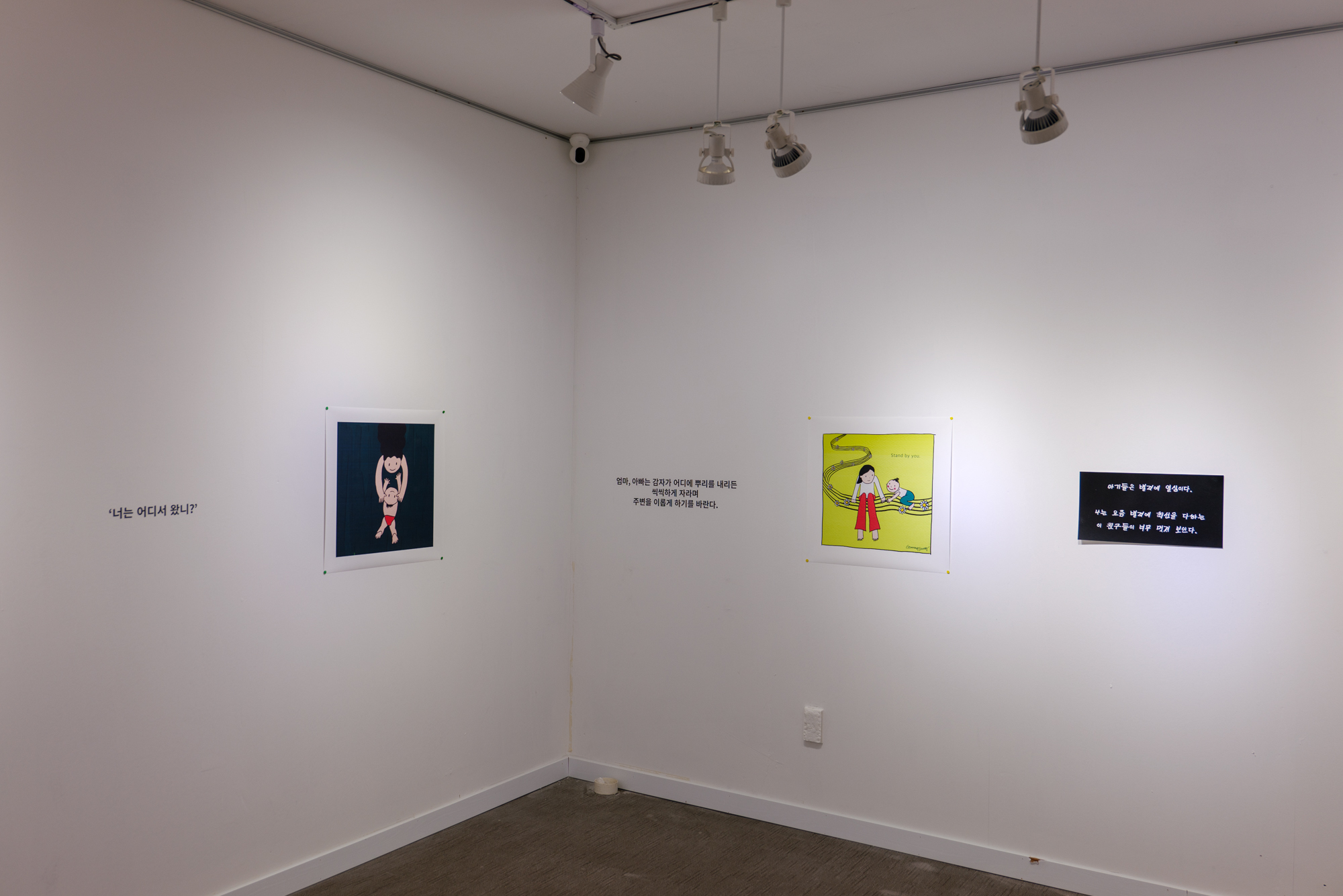 제주 애월 카페 그라운드폴에 갔을 당시에는 '이렇게 좋은 날에'라는 전시가 진행되고 있었다. 두 아이의 부모인 로이와 신디라는 작가가 가족에 대한 내용으로 그린 그림과 글귀가 있어서 가족여행객이 가서 구경하면 좋을 것 같다는 생각이 들었다.