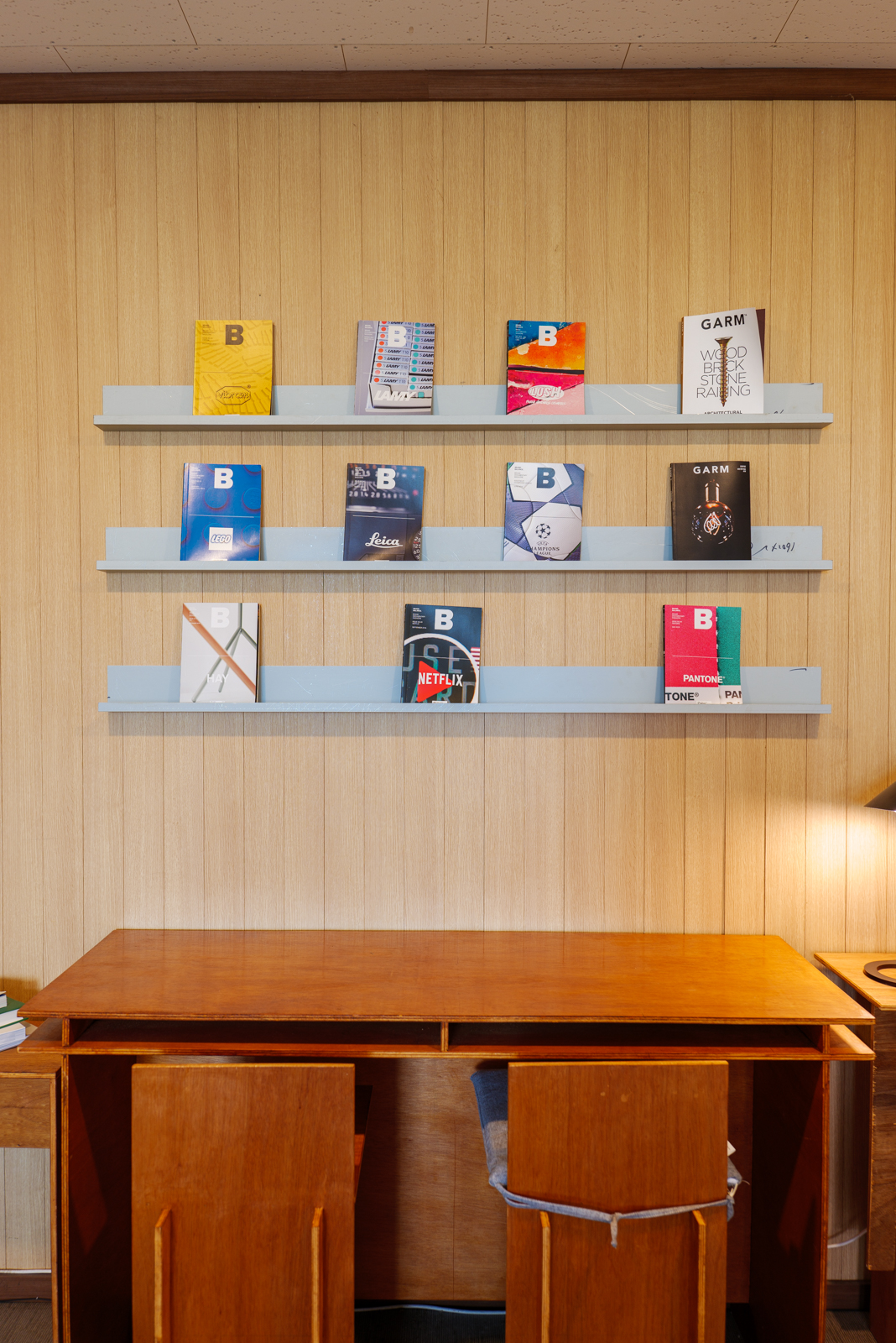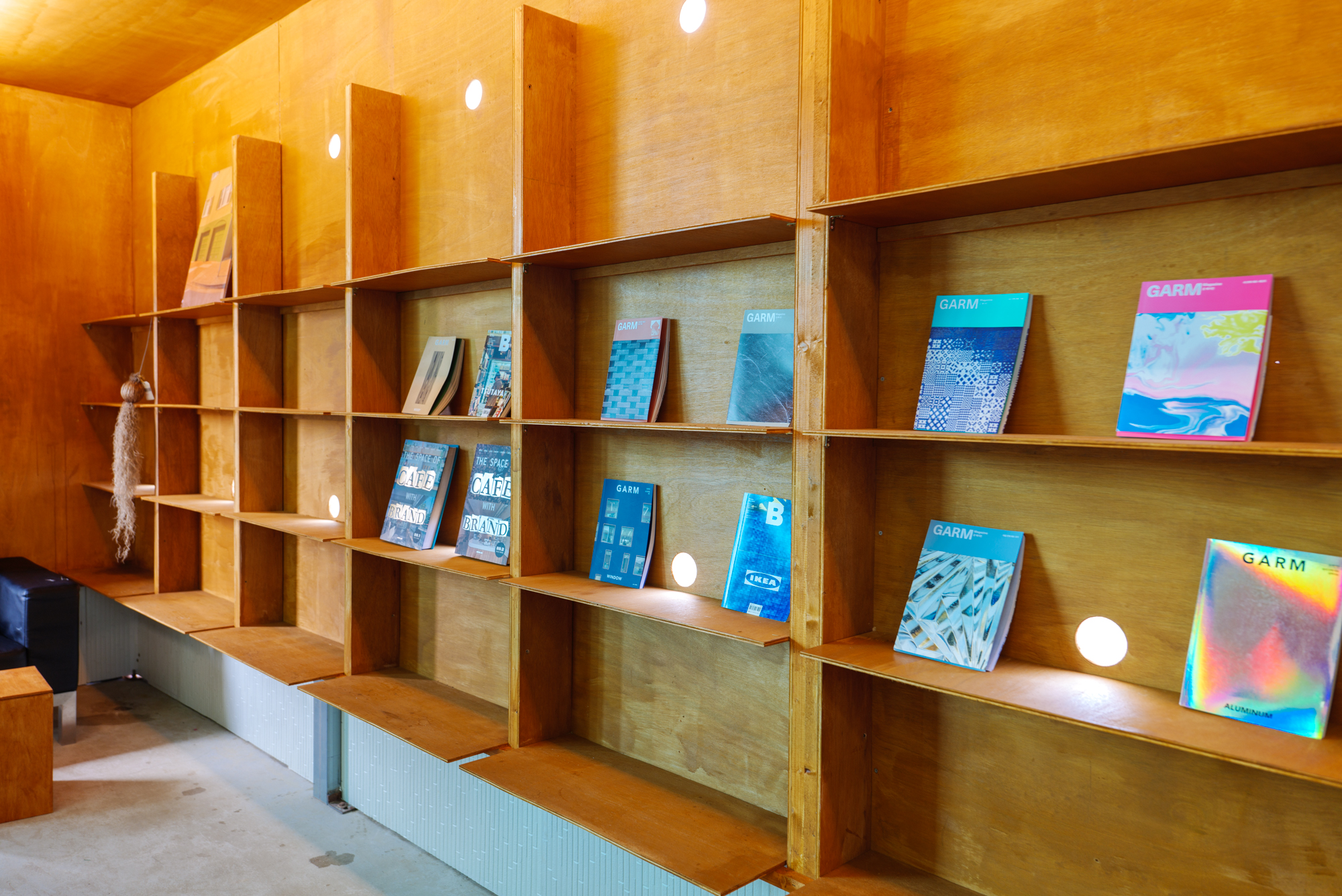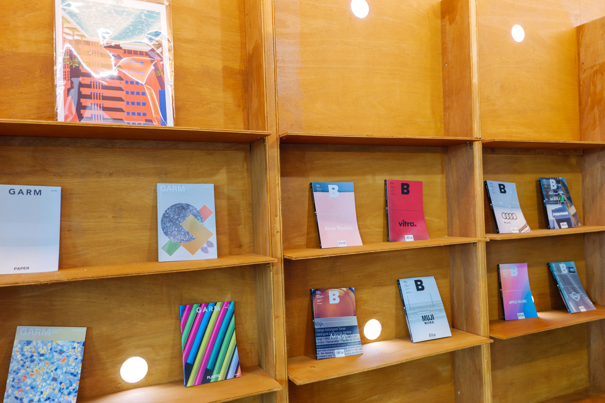 제주 애월 카페 1층 카운터 앞에는 B매거진과 그램 등 잡지로 꾸며진 책장이 있었고 양옆으로 조용한 분위기에서 앉을 수 있는 테이블도 마련되어 있다.