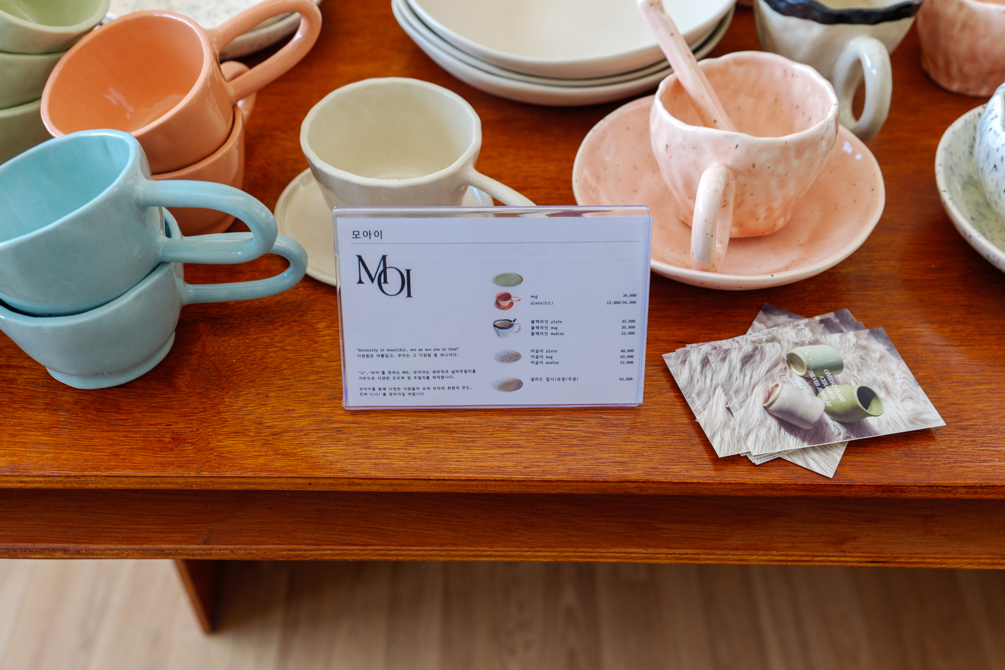또한 제주 애월 가볼만한곳 폴카페에는 모아이라는 브랜드 머그잔과 컵도 있었는데 색상별로 취향에 따라 찻잔과 함께 구매할 수 있었다. 다양한 무늬가 담긴 접시는 인테리어 주방 소품으로도 활용하기 좋기에 제주도 여행 기념품이나 선물로 고르면 좋을 것 같았다.