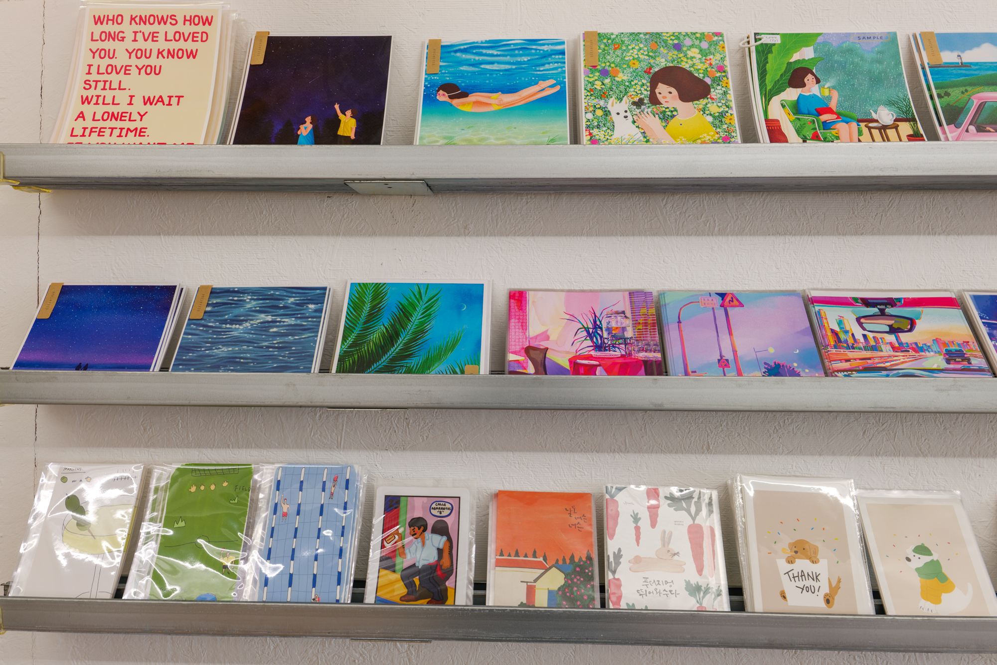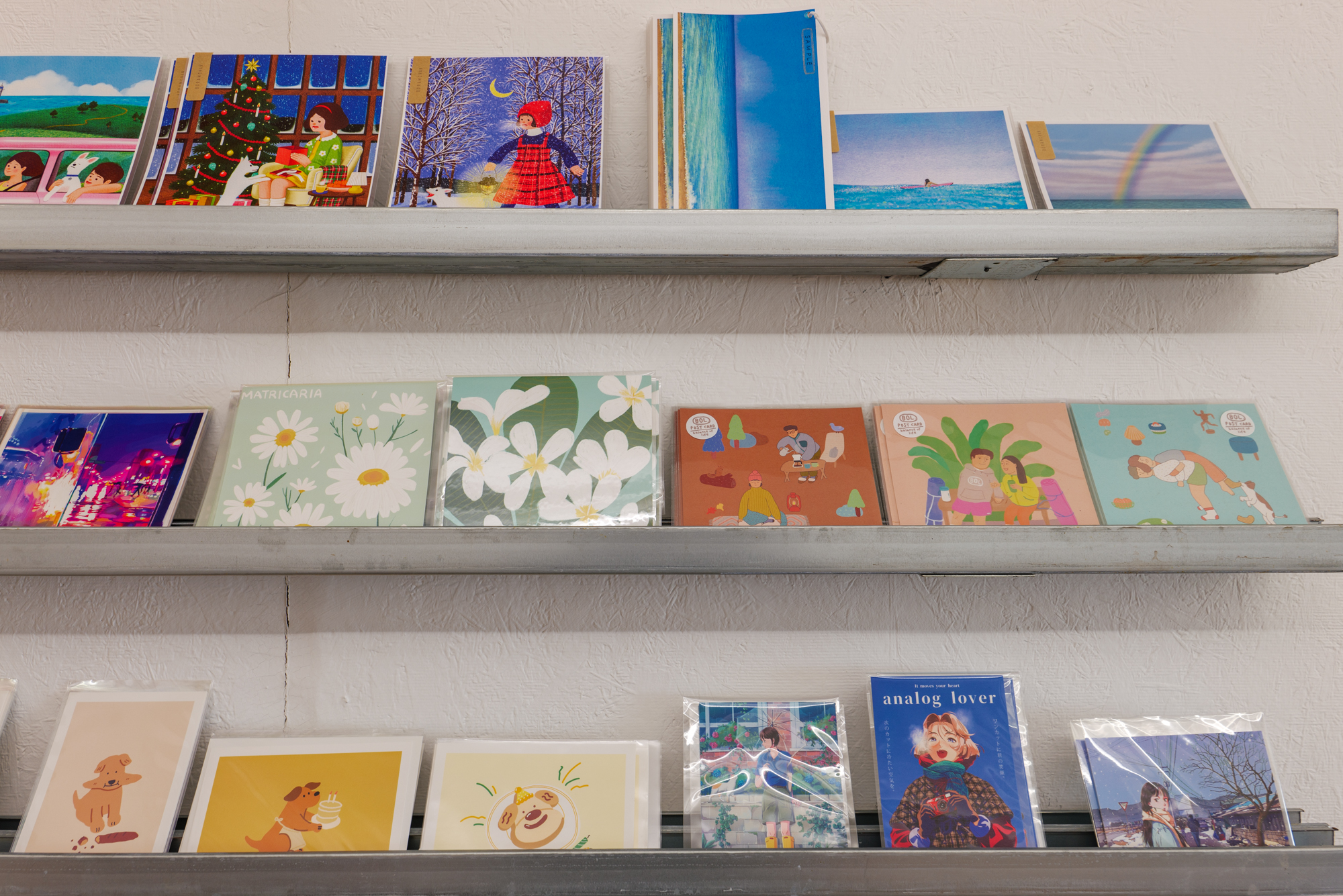 본관 카페 1층에 있는 계단을 따라 2층으로 올라가면 제주 애월 소품샵을 만나볼 수 있다. 소품샵 안에는 여러 애니메이션 캐릭터부터 꽃과 동물을 담아낸 엽서가 있으며 낱개로 하나씩 포장되어 있었다.