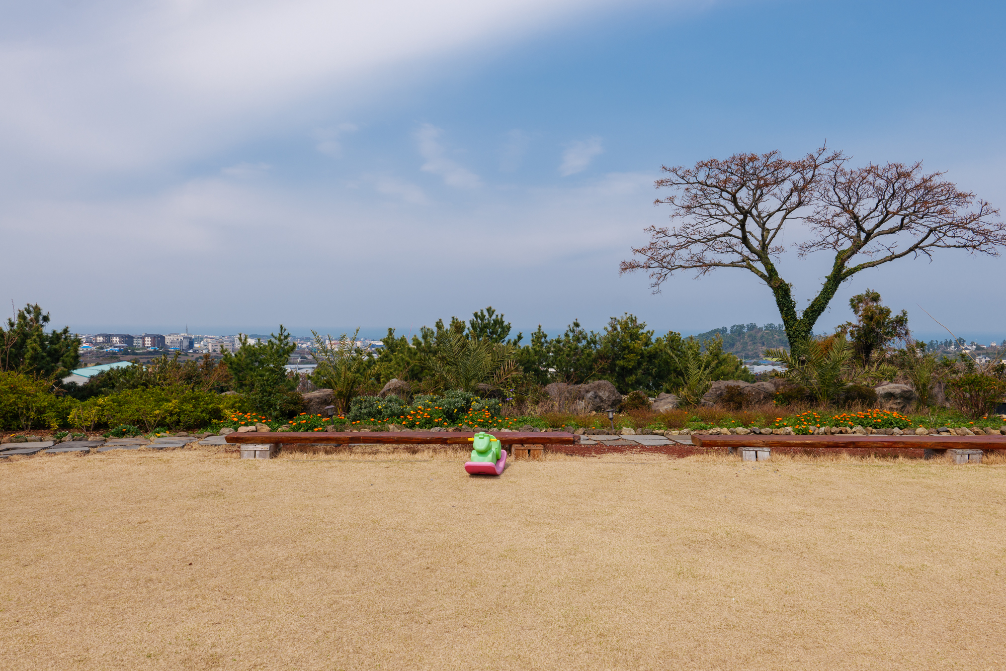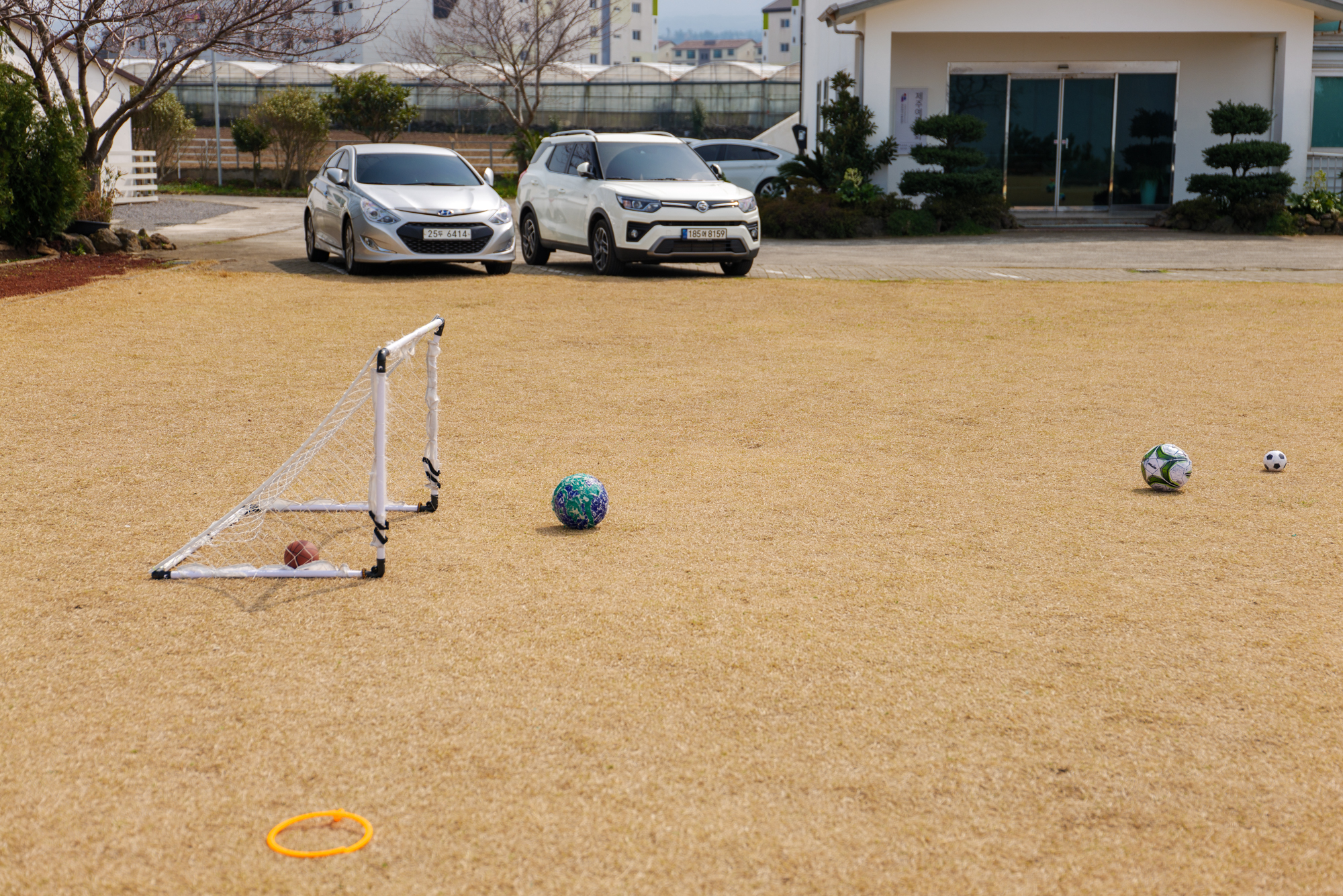 제주 애월 카페 앞에는 아이들은 물론 강아지가 함께 놀 수 있는 잔디광장이 있으며 놀이기구와 함께 미니 축구골대가 설치되어 있어 가족 단위로 여행이나 나들이를 하러 가기에 좋은 곳이다.