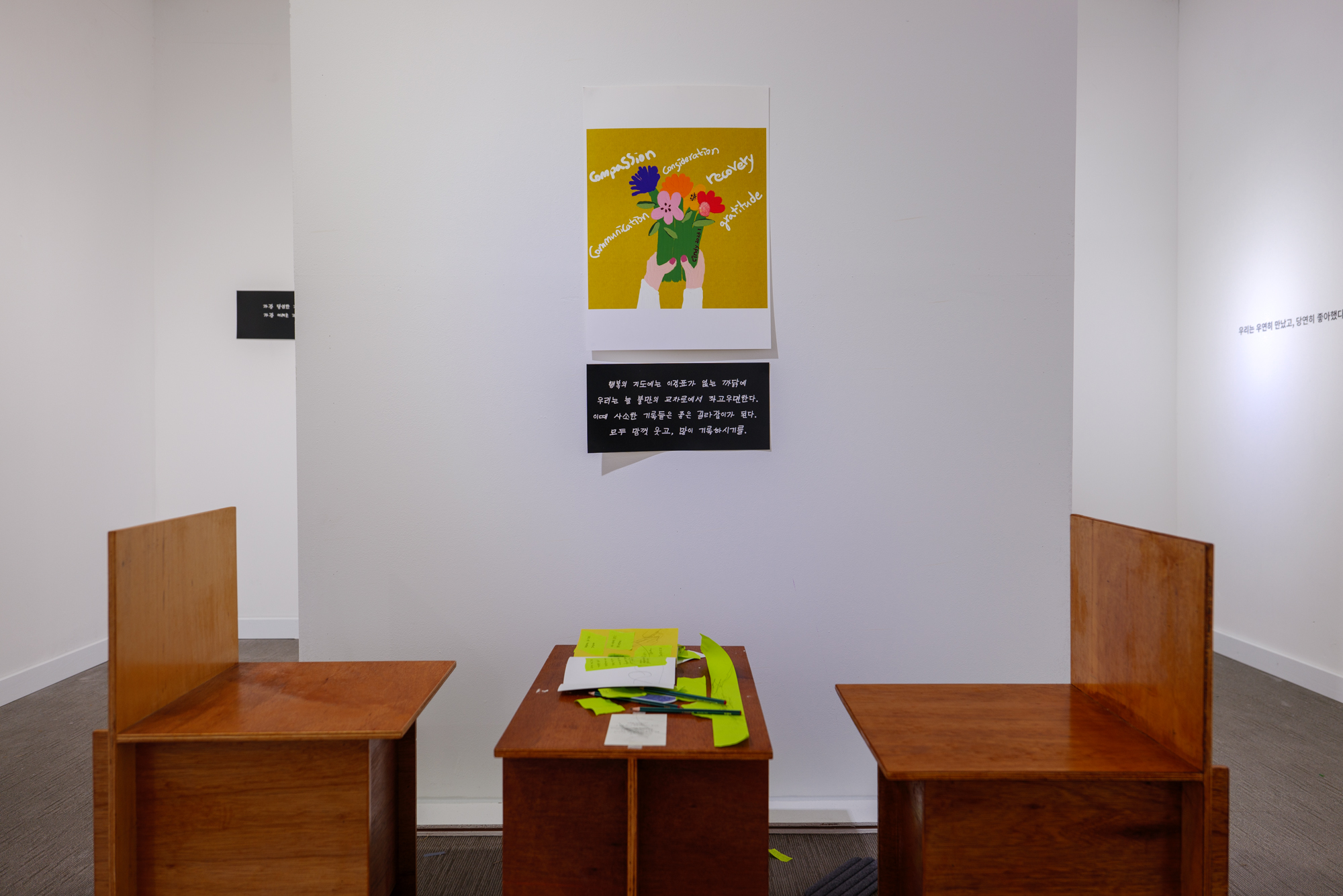 전시장을 천천히 둘러보며 그림과 글귀를 보니 하나의 미술관을 감상하는 듯한 느낌도 받을 수 있었다. 현재 그라운드폴 카페에서는 다가오는 4월 22일 지구의 날을 맞아 '제주 바다 살리기' 행사를 통해 폐자재를 활용한 업사이클링 전시, 제로웨이스트 팝업스토어, 해안 쓰레기 줍기 플로깅 등을 진행하며 환경보호단체에 기부도 한다고 하니 관심이 있다면 참여해보자.