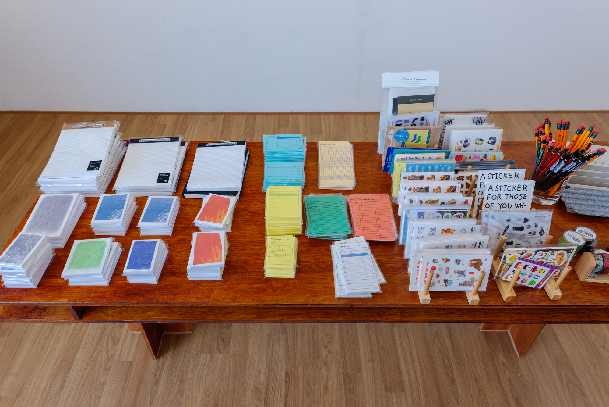제주 애월 소품샵에는 캔들, 엽서 외에 스티커, 메모지, 인테리어 소품, 주방용품 등 여러 아이템이 진열장 위에 가지런히 놓여 있었다.