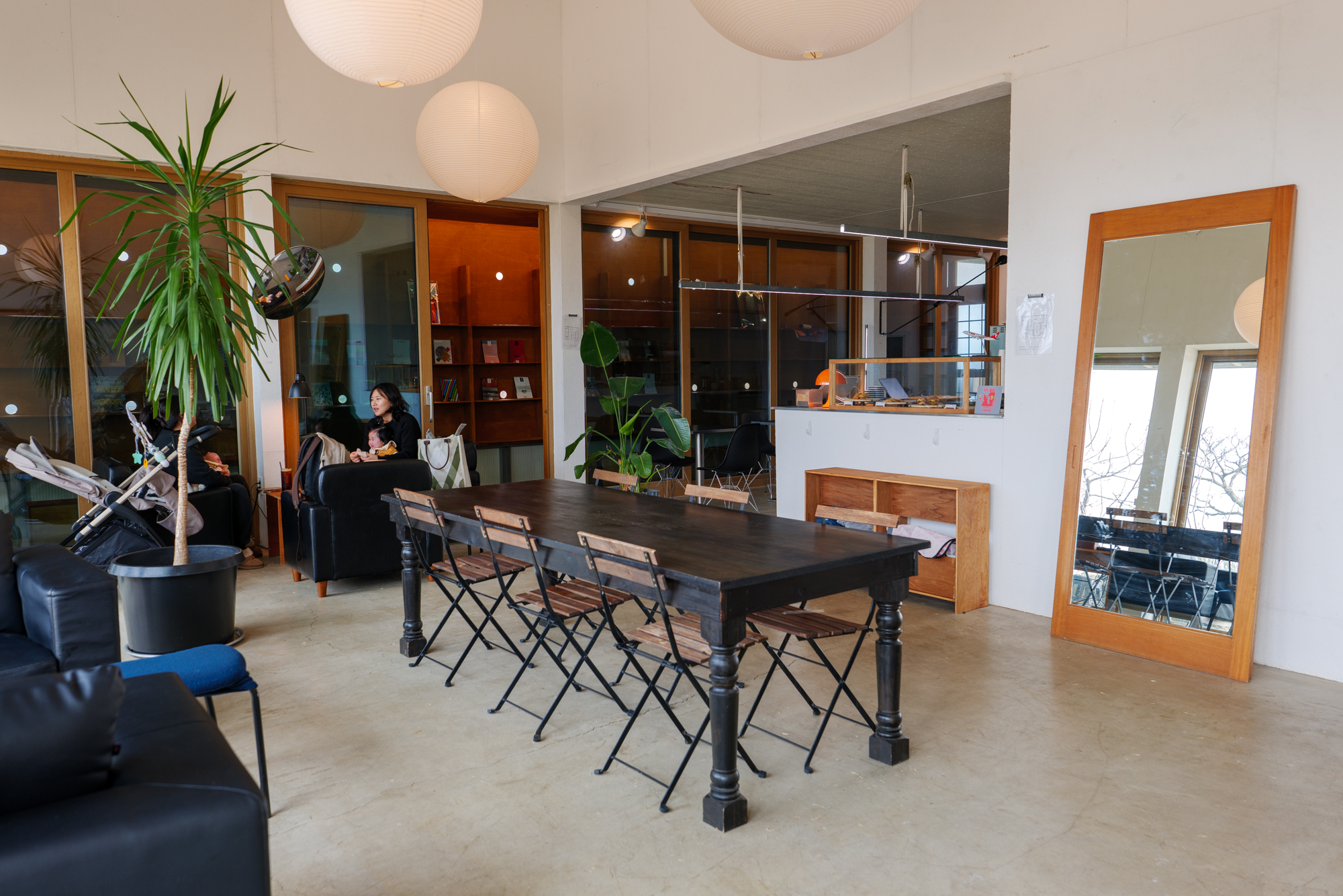 본관 1층에는 여러 명이 앉을 수 있는 테이블과 함께 커피, 음료, 브런치를 주문할 수 있는 카운터가 있었으며 반대편에는 전시 공간과 별도의 룸이 있었다.