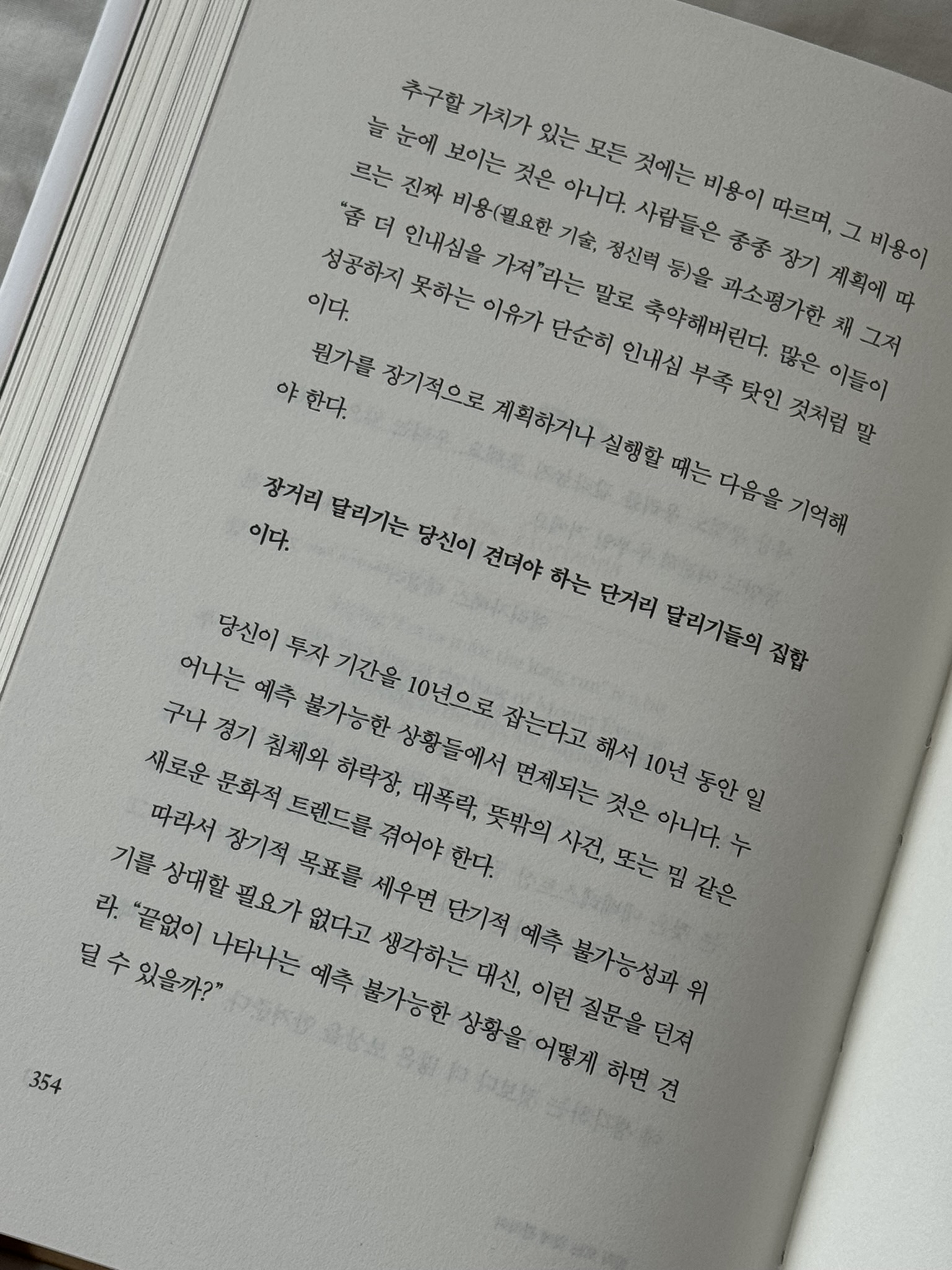 그렇게 파악된 변하지 않는 것들이 장기 전략을 적용할 대상이 된다. 그 외의 나머지에는 유통기한이 있다. 장기전에서는 시간 자체보다 유연성이 더 중요하다 - 357