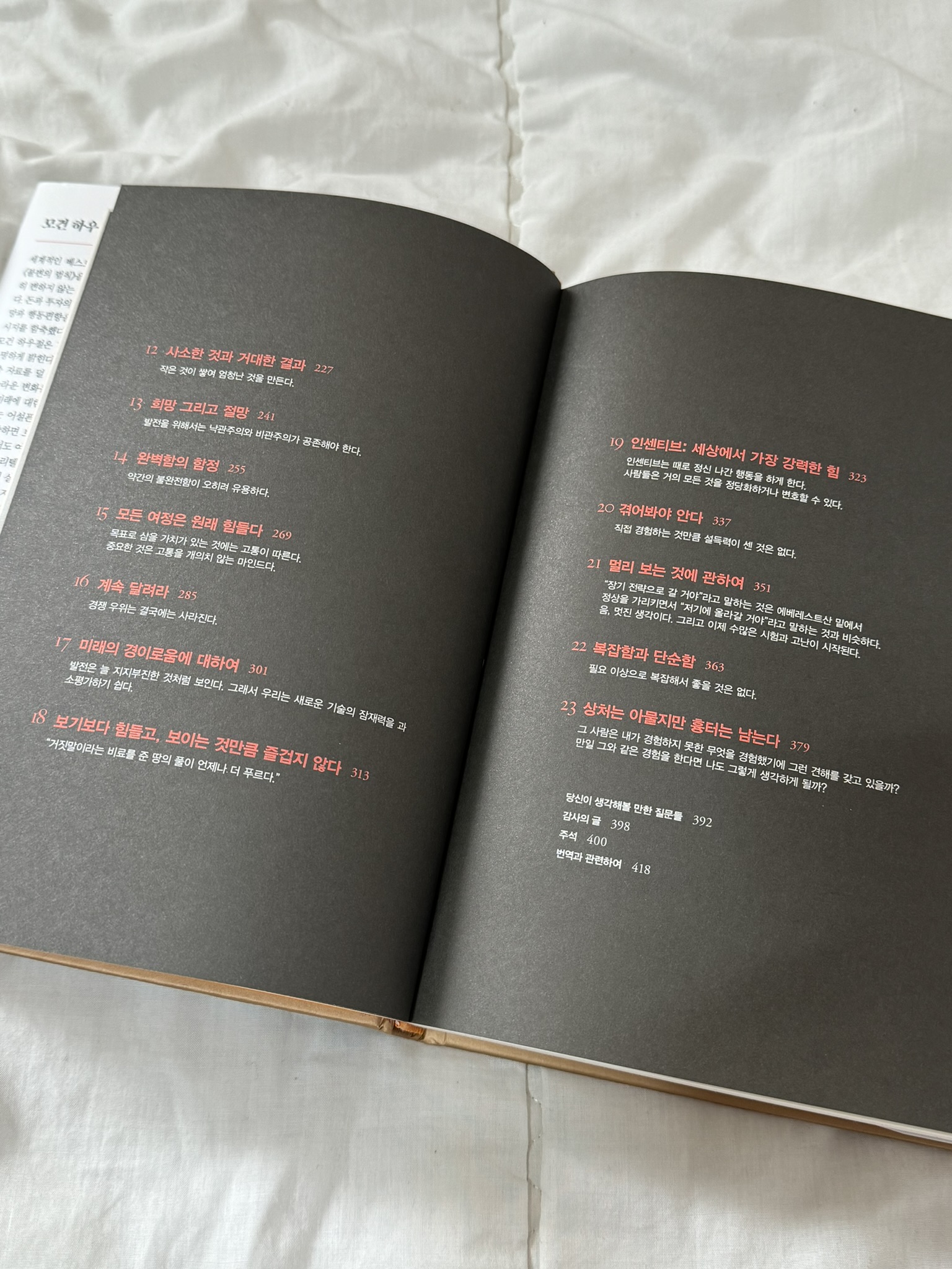 전작이 워낙 유명한 탓에 출간된다는 소식을 듣자마자 주문했고 시간이 날 때마다 읽었는데 주석을 제외하고 약 400페이지 분량의 양장도서라 완독하기까지 다소 시간이 걸렸다.