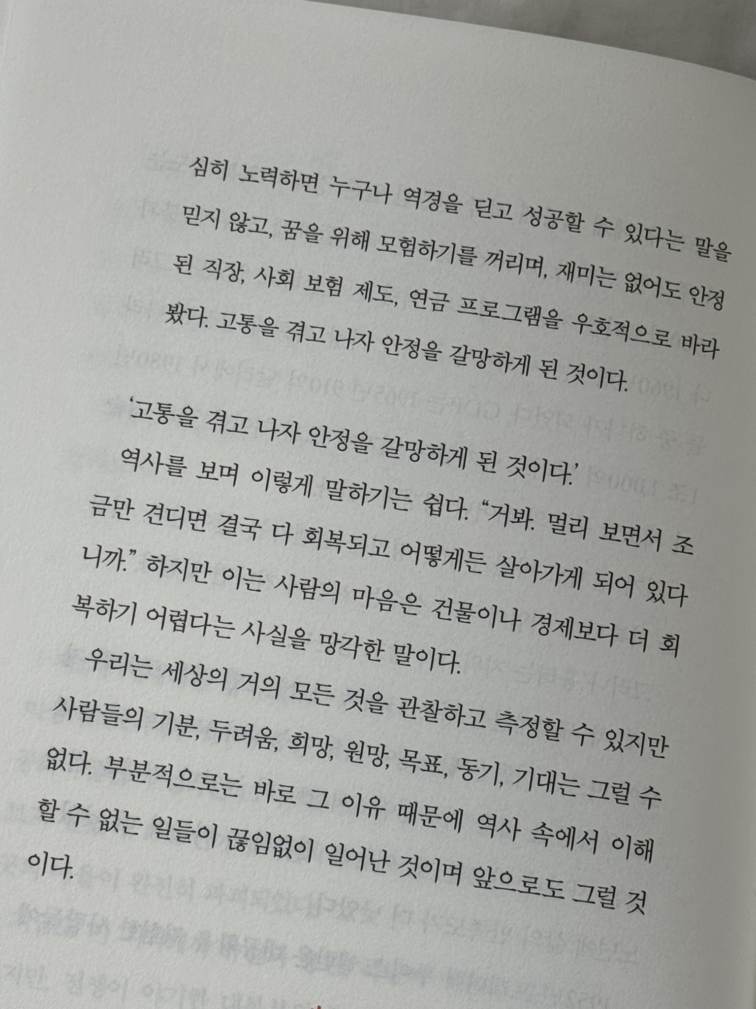두려움과 고통, 역경은 긍정적 감정이 결코 따라올 수 강력한 동기 부여 요소다. 이것은 역사가 주는 큰 교휸이다. 그리고 이 교훈은 결국 우리에게 이런 깨달음을 준다. '어떤 삶을 원해야 할지 신중하게 생각하고 판단하라'