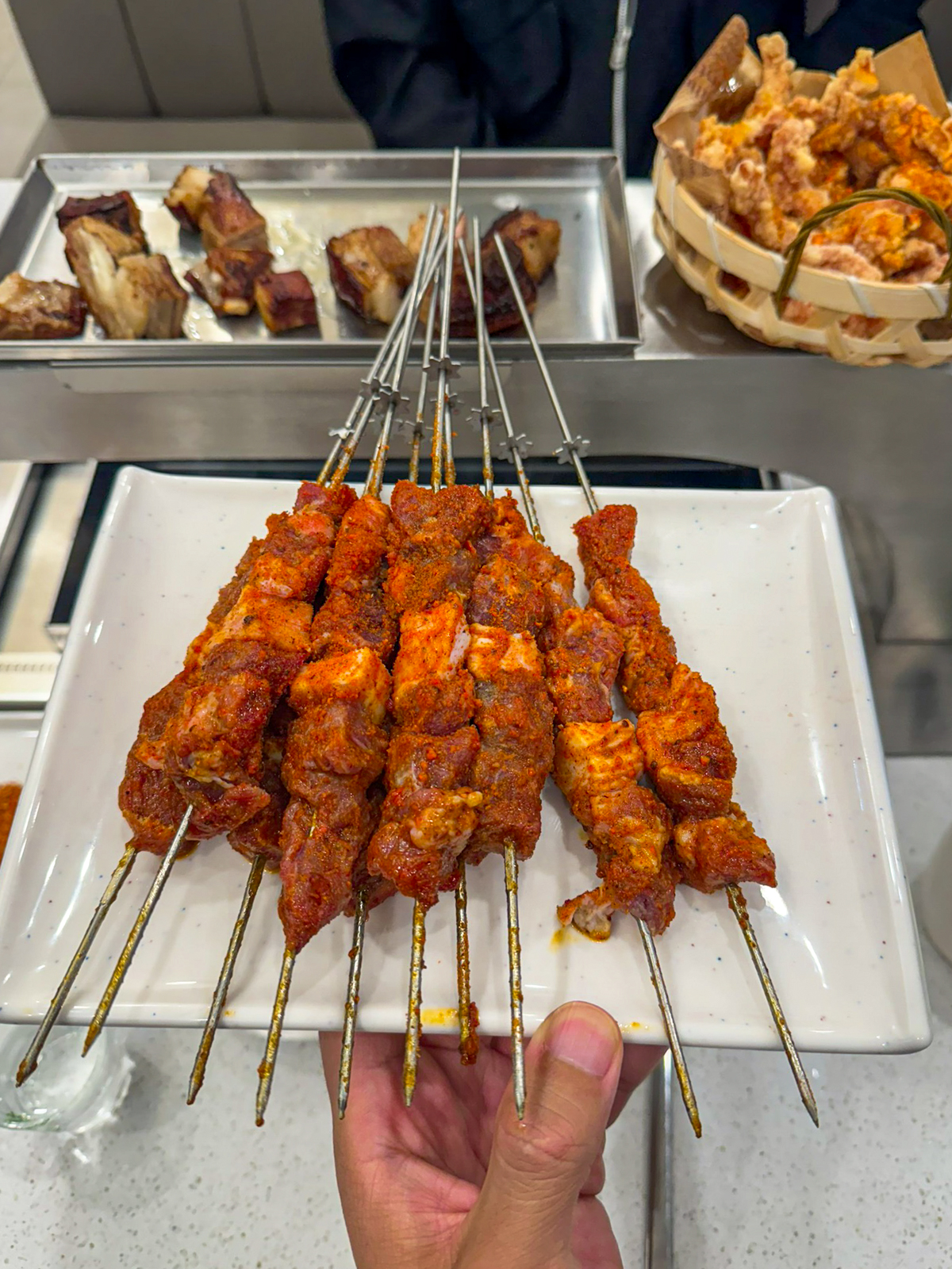 양꼬치는 종류만 열 가지가 넘어 취향에 따라 선택할 수 있으며 일반적인 양념꼬치뿐만 아니라 야채가 들어간 꼬치, 마라향 양꼬치, 양진꼬치, 양콩팥, 항정살, 돼지콩팥, 오돌뼈, 닭모래집, 닭염통, 닭날개 등도 있다.