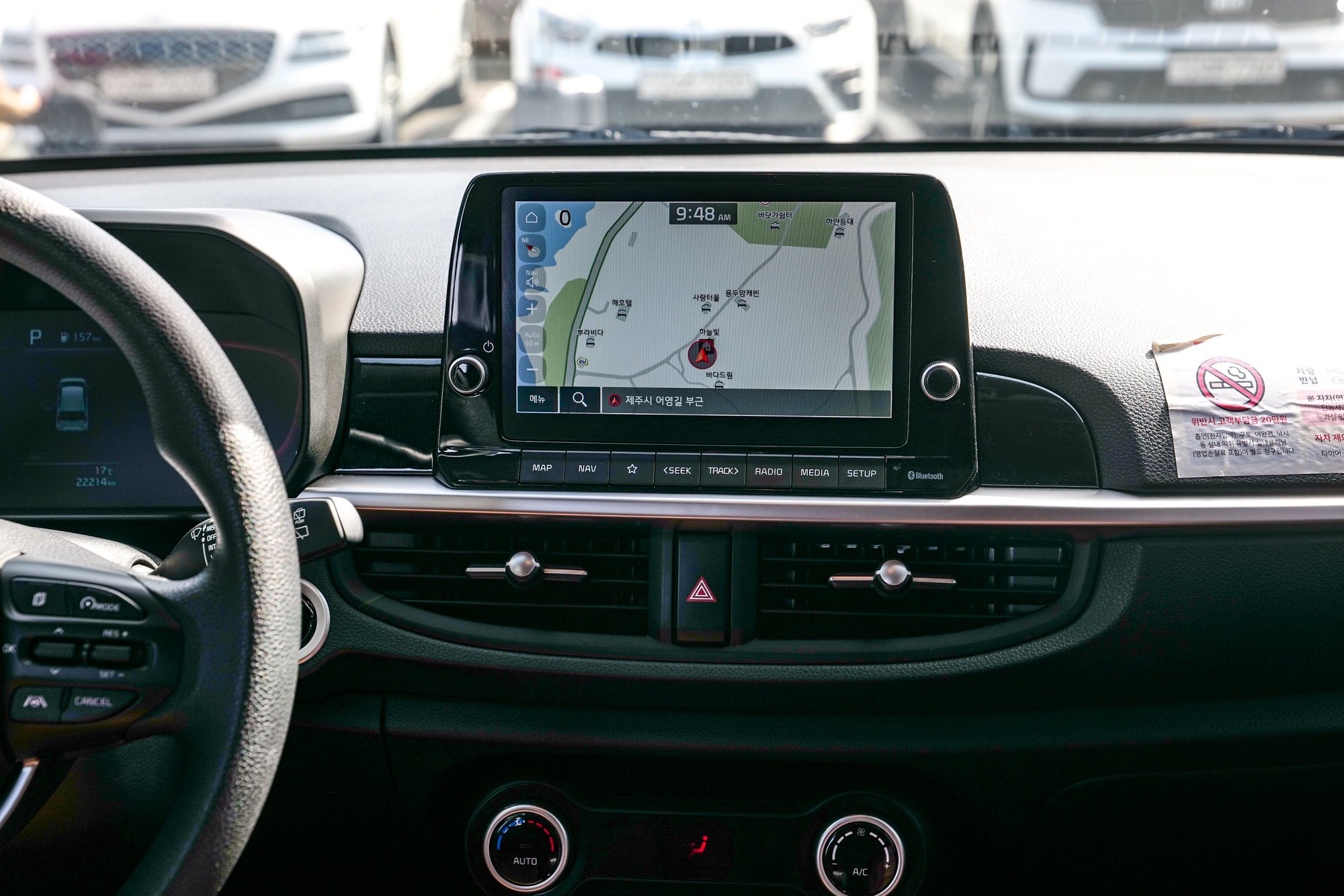 네비게이션은 최신 GPS 업데이트로 제주도 관광지, 식당, 카페 등 경로를 설정해 쉽게 찾아갈 수 있으며 블루투스를 통해 음악 감상과 통화도 가능하다.
