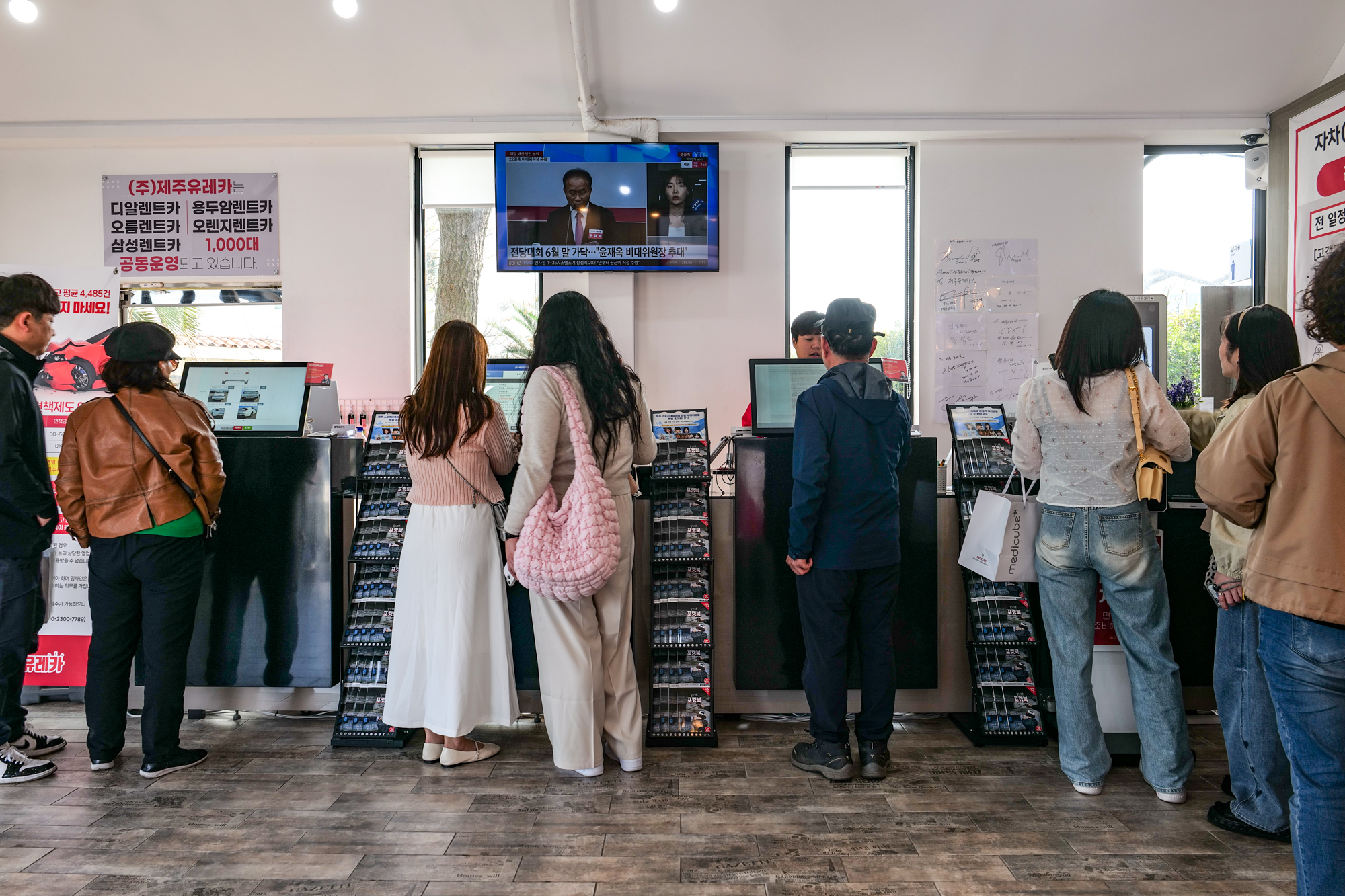 버스를 타고 차고지에 도착하면 라운지 건물로 들어가서 제주속으로에서 예약했던 제주공항 렌트카를 확인한 후 완전자차 보험과 주의사항에 대한 설명을 듣고 모니터에 서명하면 차량 위치를 안내해준다.