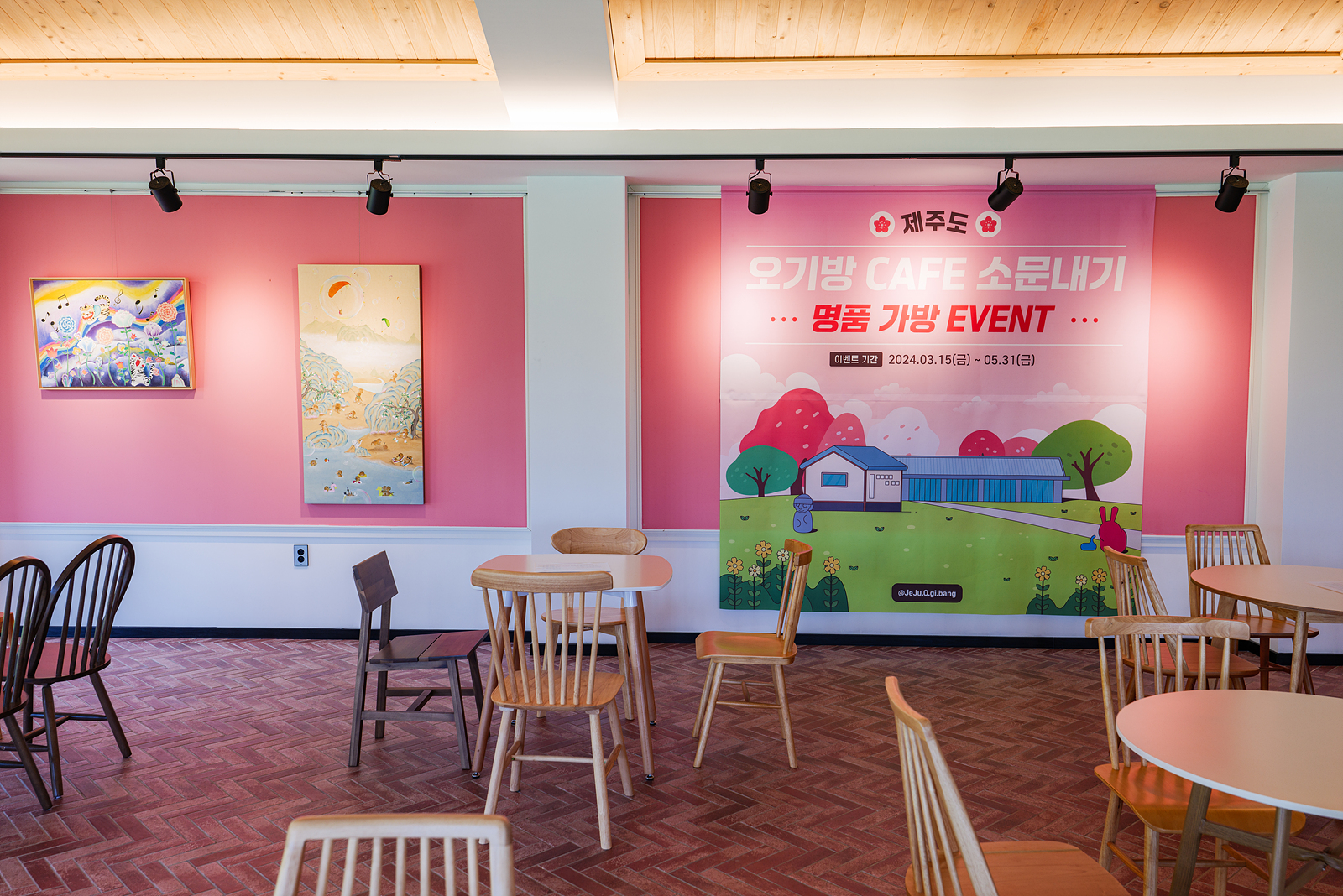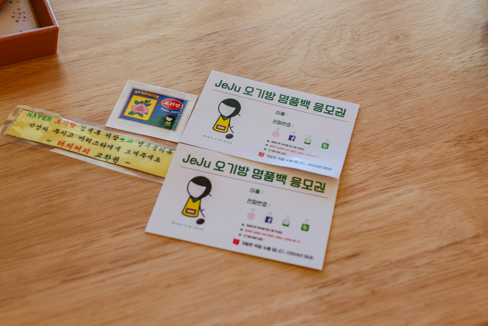 제주 오기방에서는 카페 방문 후 찍은 사진이나 영상을 인스타그램에 업로드 후 응모권에 이름과 연락처를 작성하고 직원에게 전달하면 추첨을 통해 명품가방을 증정하고 있다.