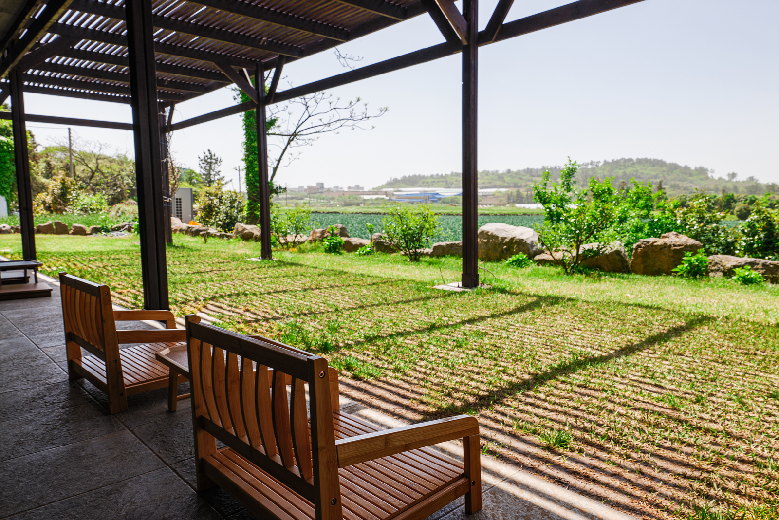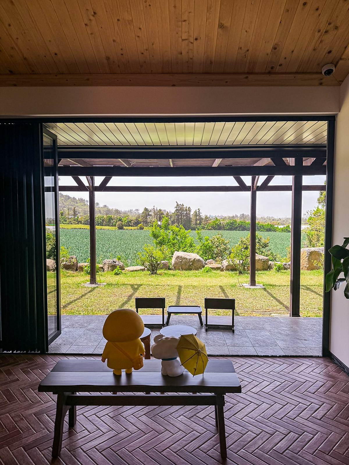 카페 내부에서 바깥으로 밭 풍경을 볼 수 있는 곳에 원목의자와 테이블이 있어 요즘처럼 날씨가 좋은 봄에 가기 좋았고 비가 오더라도 운치있는 분위기를 만끽할 수 있다.