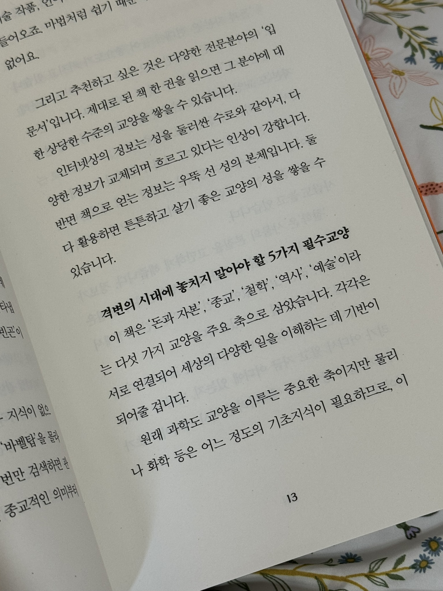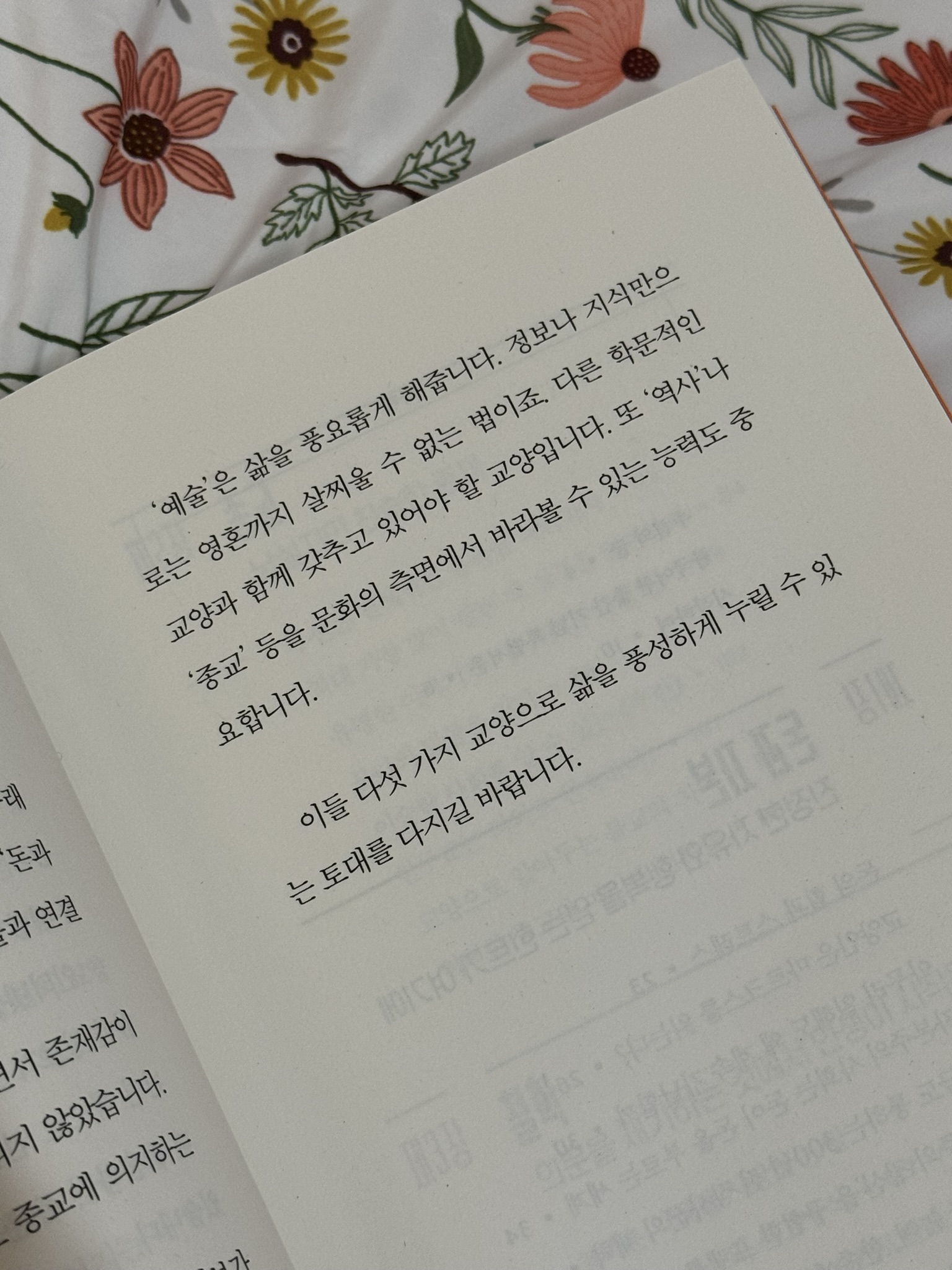 이 책은 지난 2024년 3월 20일에 초판 1쇄가 발행되고 한 달 만에 4쇄까지 발행될 정도로 인기가 많은데 그만큼 교양의 중요성이란 누구나 알고 있는 만큼 알고 있었던 내용이라 하더라도 머릿 속 지식을 다시 일깨우게 하기에 읽을만한 책을 찾는다면 필독을 권하고 싶다.