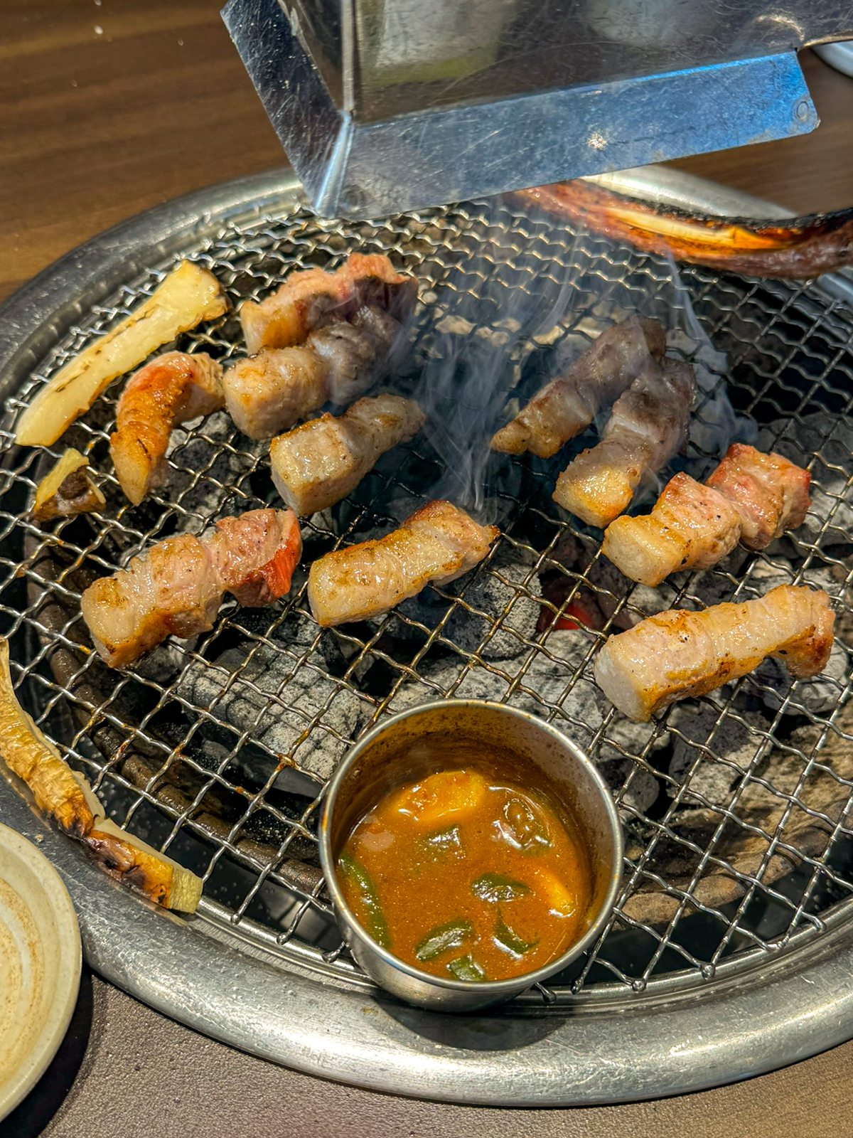 제주도 신라스테이 이호테우 근처 고기왕에서 먹었던 흑돼지 오겹살 또한 별미로 불판에 있는 멜젓에 찍어먹으면 짭짤하면서 담백한 맛을 동시에 느낄 수 있고 계속해서 먹고 싶은 중독성을 불러일으킨다.