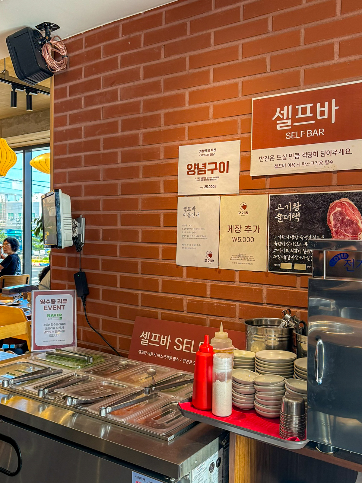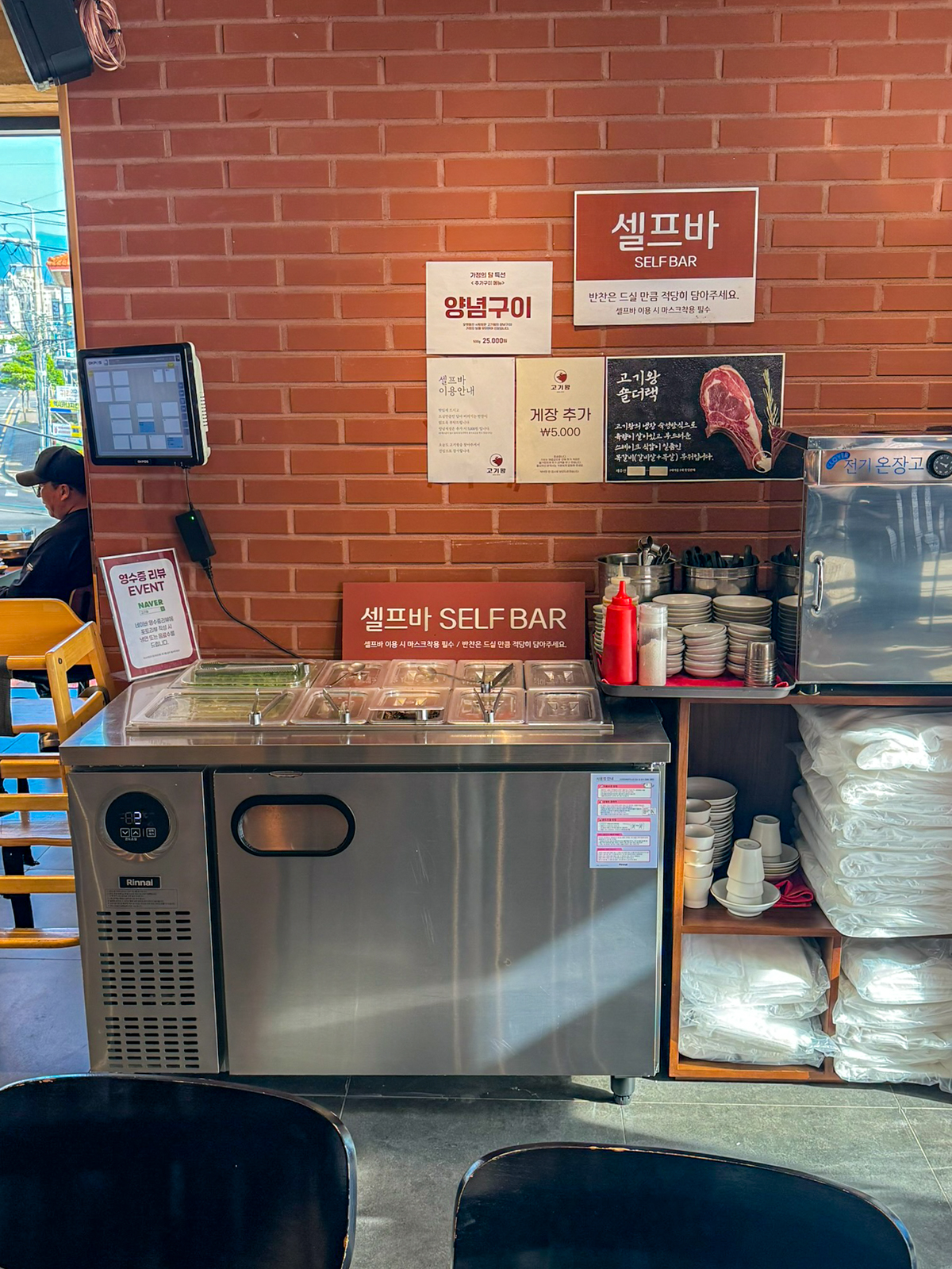 배추김치인 경우 기본적으로 제공이 되지 않지만 셀프바에 가면 그릇에 떠서 먹을 수 있으니 이곳에 간다면 미리 참고해봐도 좋겠다.