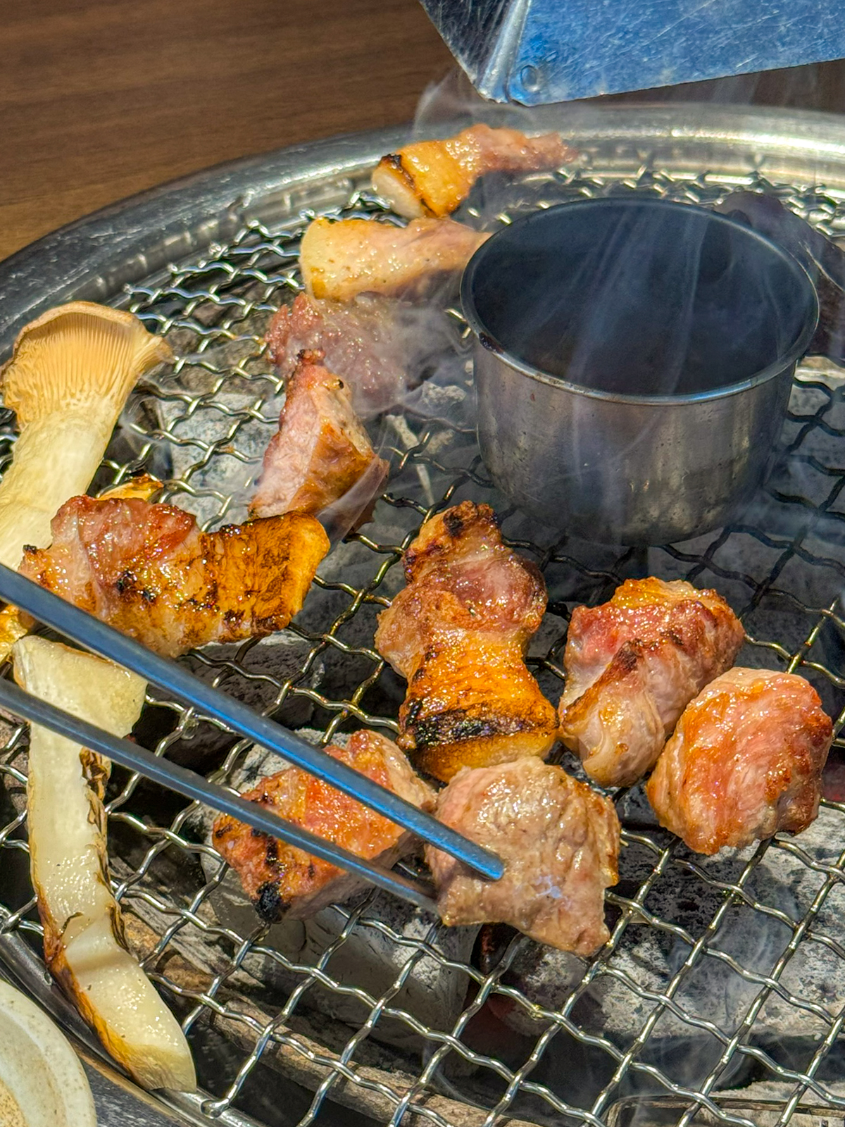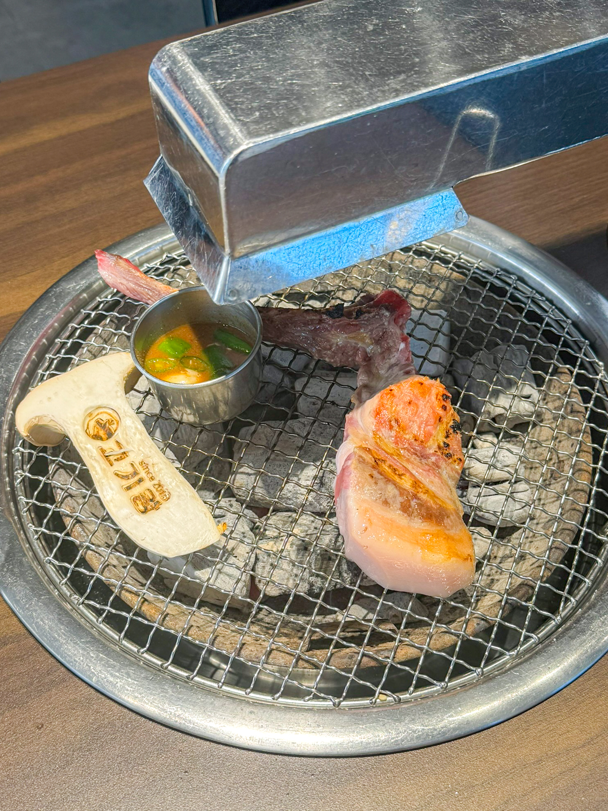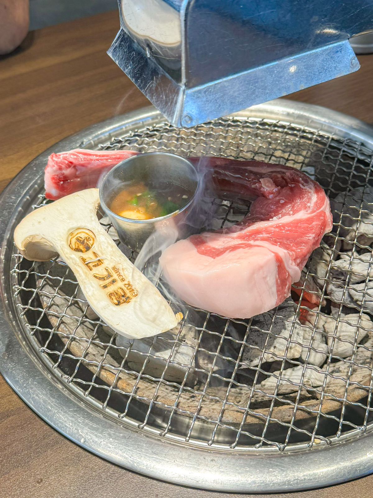 직원이 직접 참숯에 구워주는 숄더랙 숙성 흑돼지는 전체적으로 마블링이 잘 되어 있으며 먹기 좋은 크기로 잘라 안쪽까지 익혀줘서 편하게 저녁식사를 할 수 있었다.