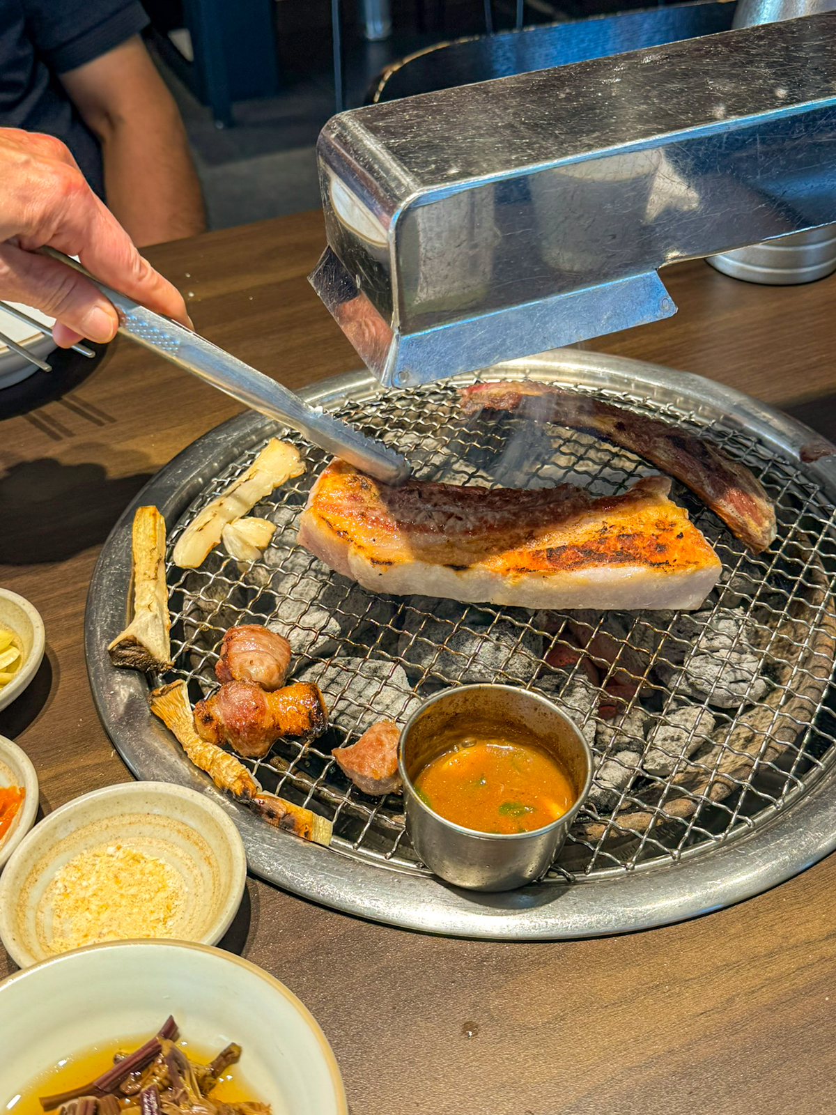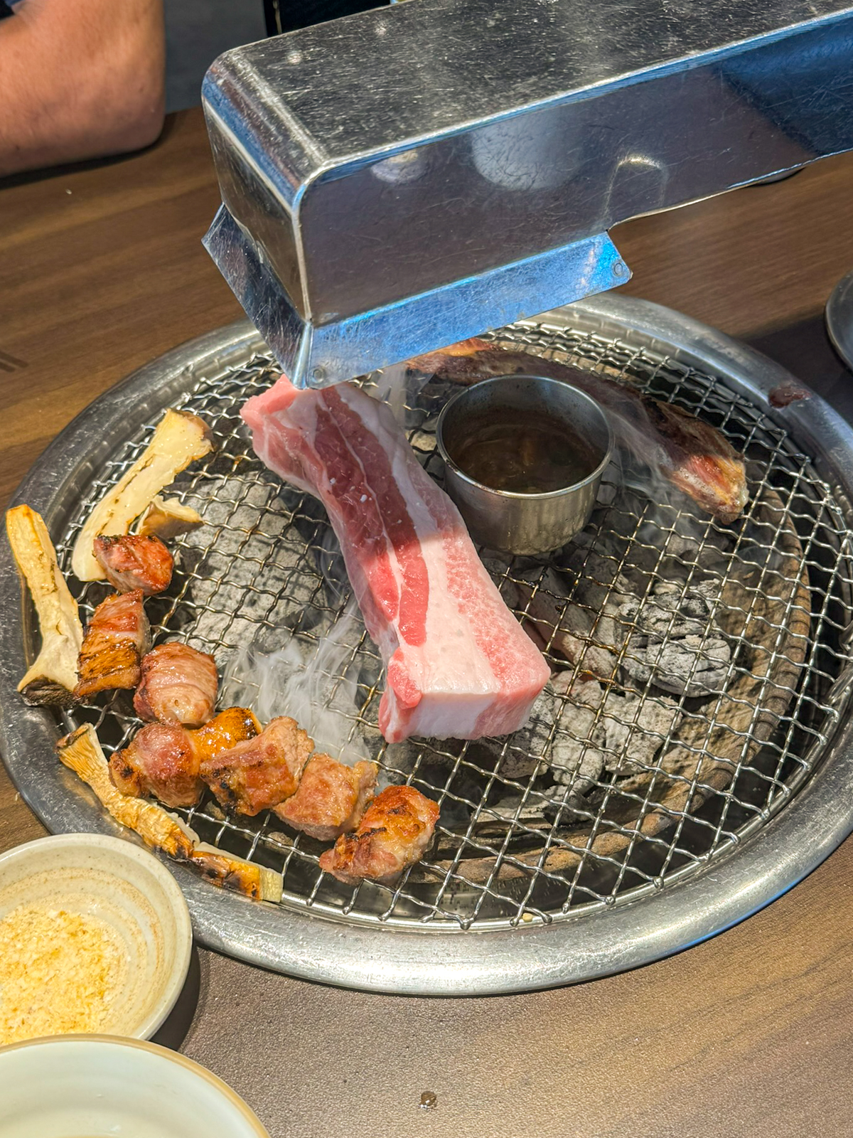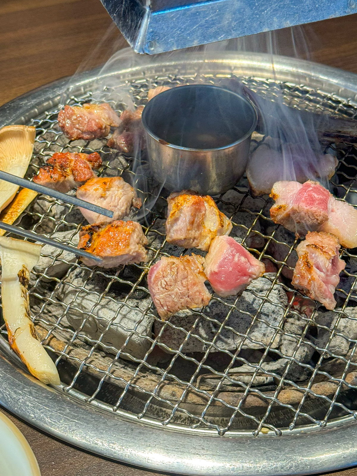 직원이 직접 참숯에 구워주는 숄더랙 숙성 흑돼지는 전체적으로 마블링이 잘 되어 있으며 먹기 좋은 크기로 잘라 안쪽까지 익혀줘서 편하게 저녁식사를 할 수 있었다.