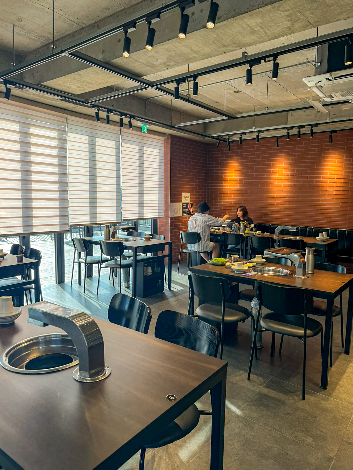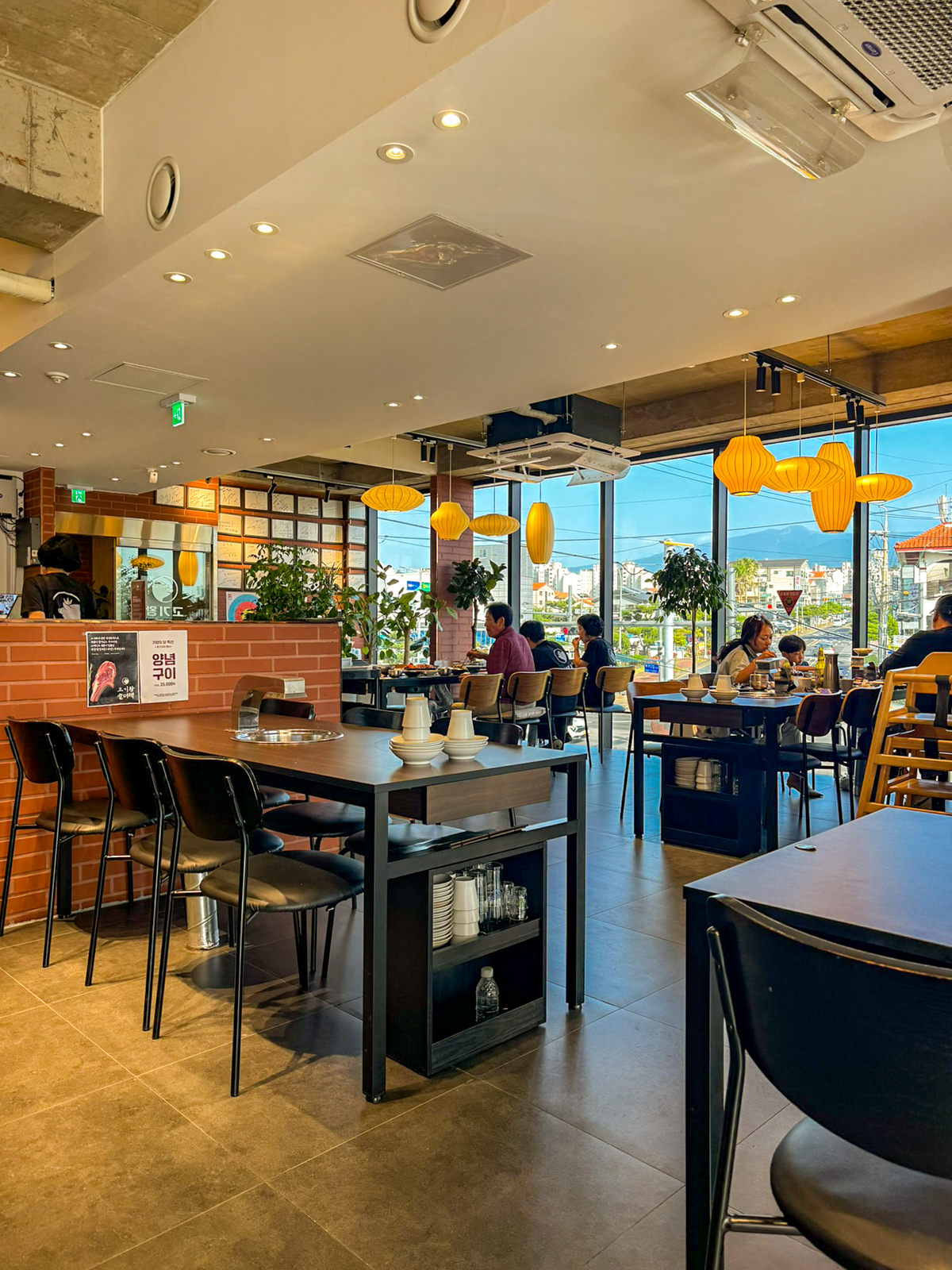 식당 내부는 여러 명이 앉을 수 있는 대형 테이블이 마련되어 있으며 한쪽 공간으로는 한라산 전망을 볼 수 있는 창가 자리가 마련되어 있었다.