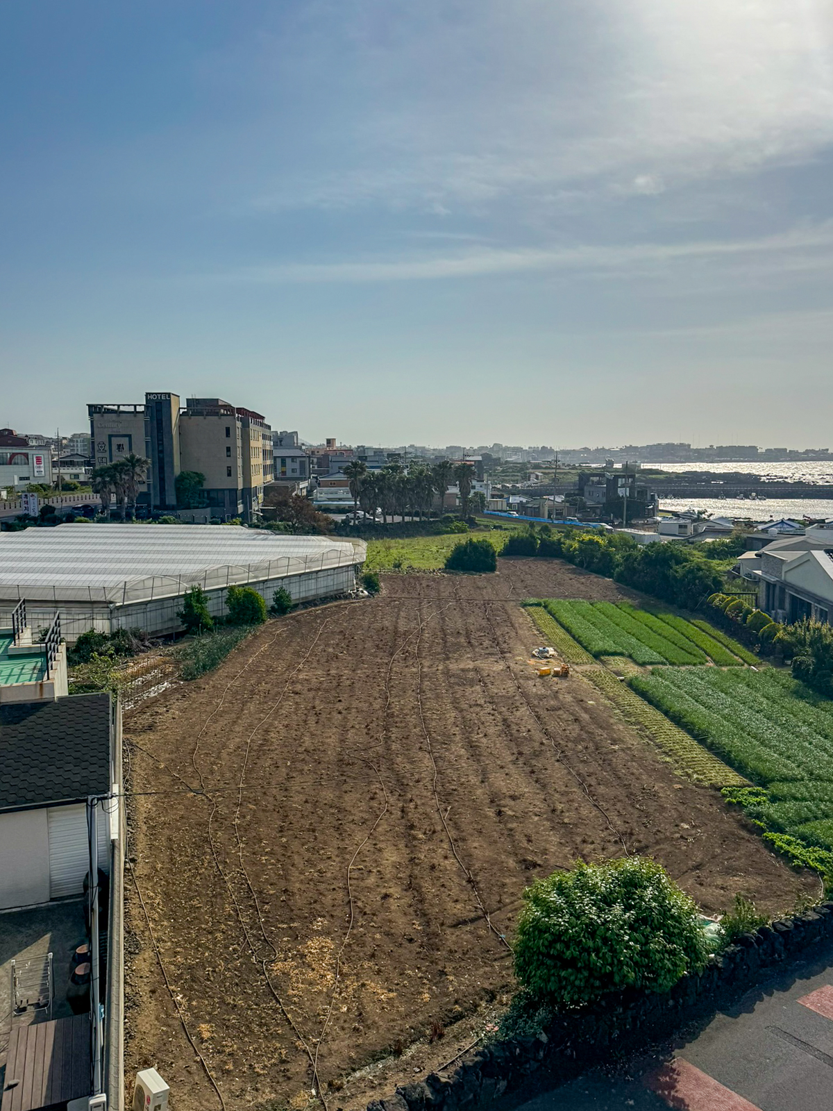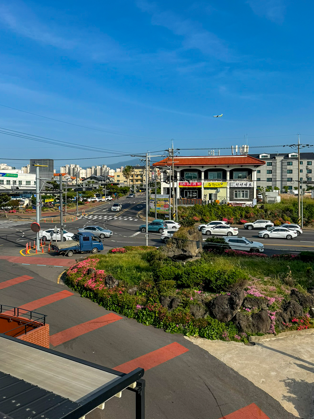 제주 애월 맛집에서 애월 흑돼지를 먹고 소화를 시킬 겸 식당 내부에 있는 문을 열고 테라스 밖을 구경해봤다. 한라산 전망으로는 제주 애월 하귀 하나로마트와 함께 비행기가 지나가는 모습도 보였다.