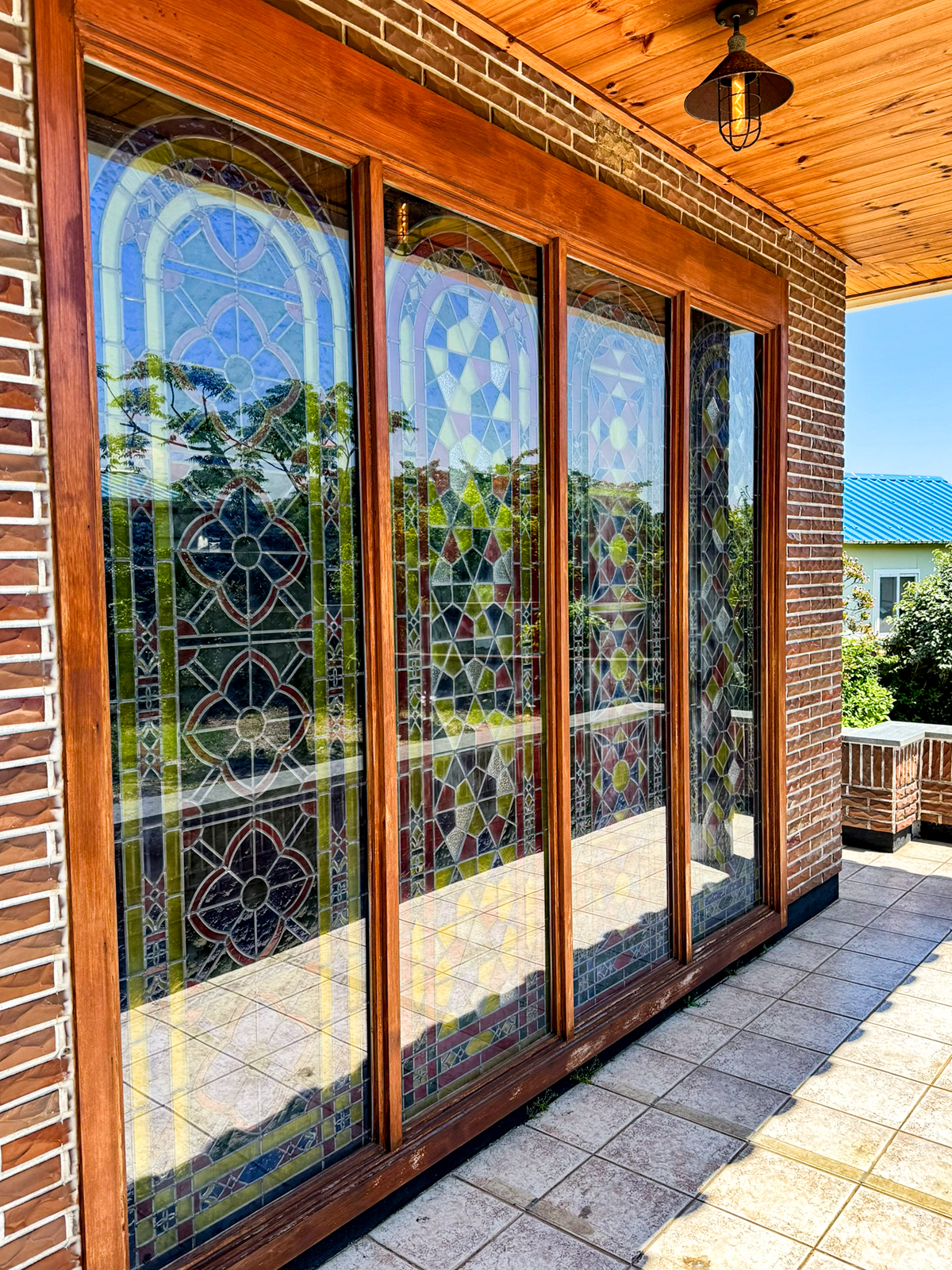 입구 옆으로는 여러 색상으로 만들어진 스테인드글라스 창문이 보이며 이곳 또한 많은 분들이 인스타그램 등을 통해 인증샷을 많이 남기는 포토존이다.