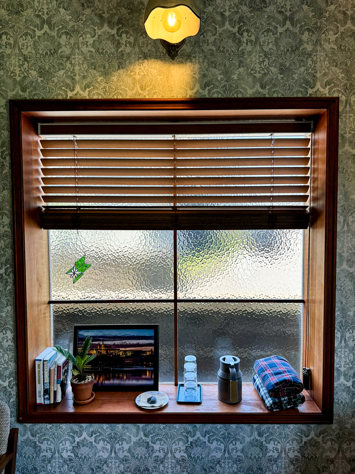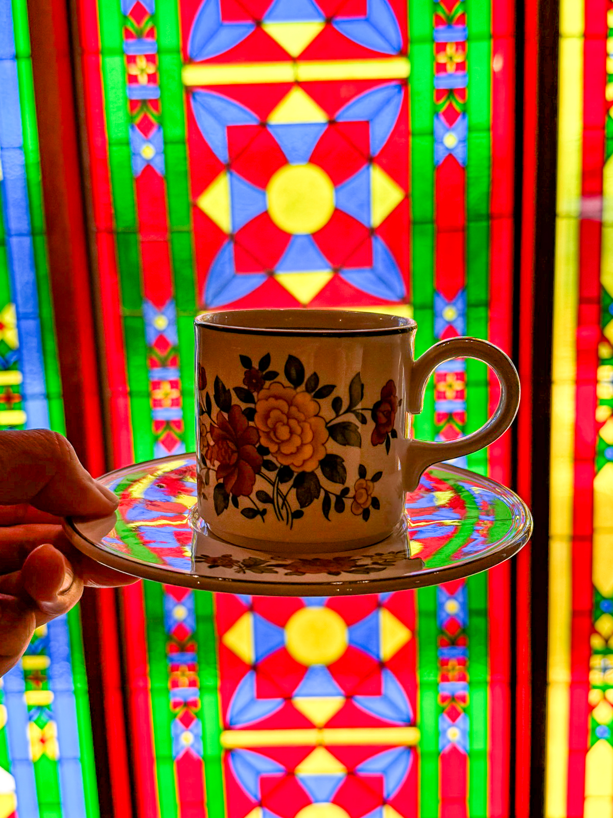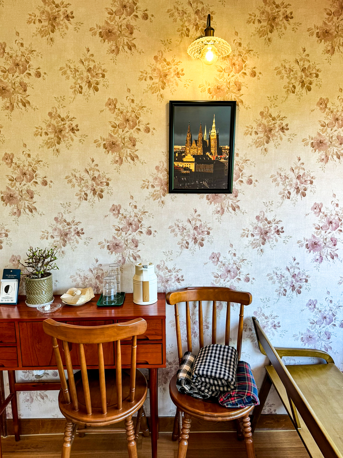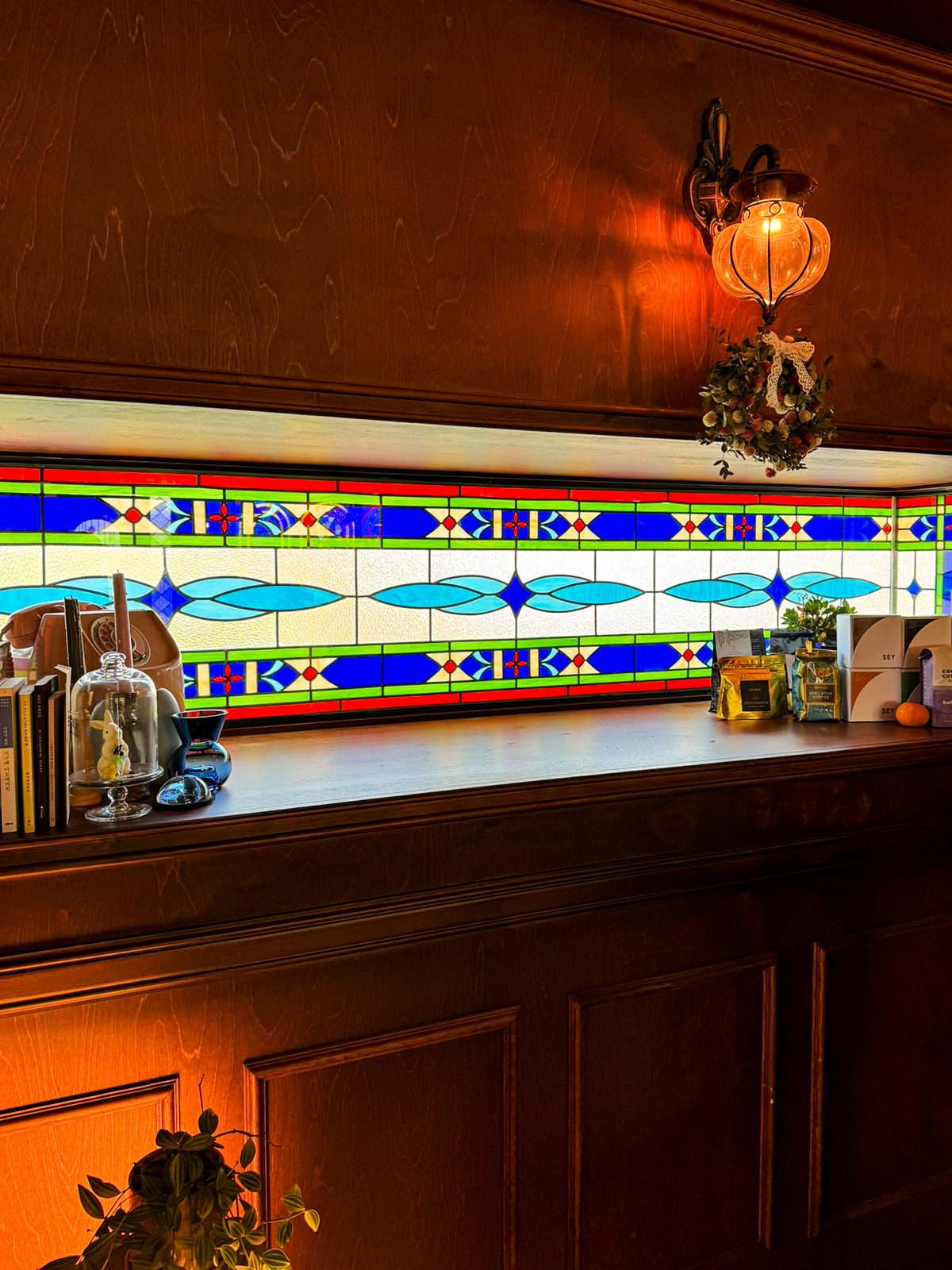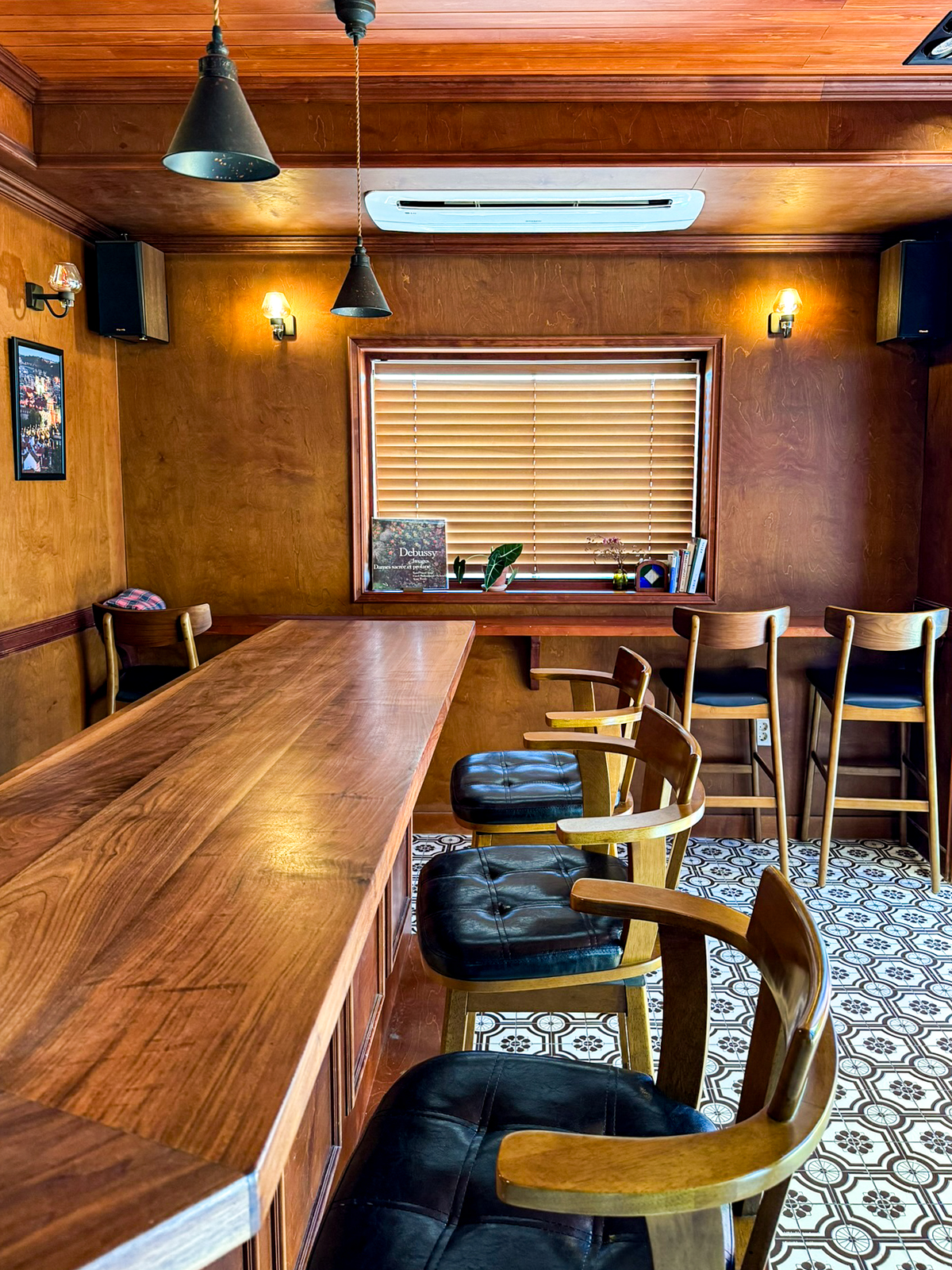 가정집을 개조한 카페 내부는 한쪽 창문에 성당에 가면 볼 수 있는 스테인드글라스에서 채광이 들어오고 전문 커피바로 운영되고 있는 곳인 만큼 카운터 앞에 바 테이블이 마련되어 있다.