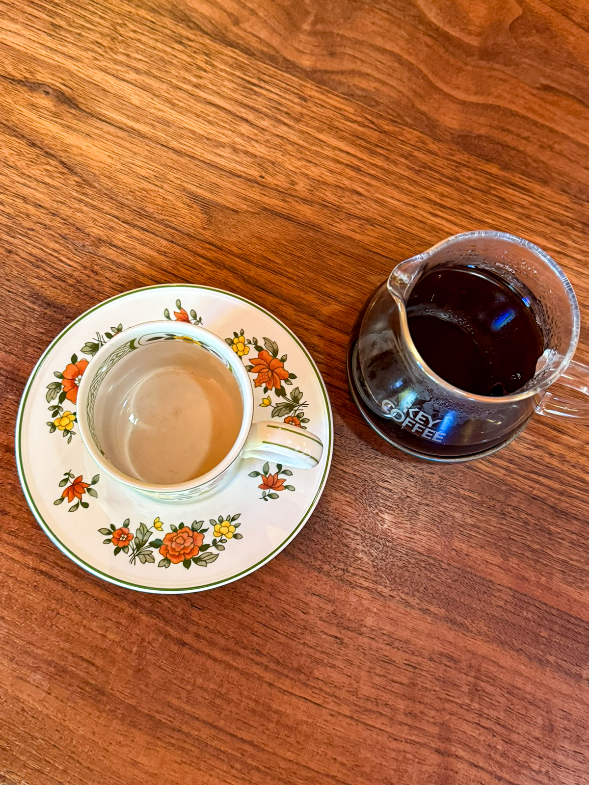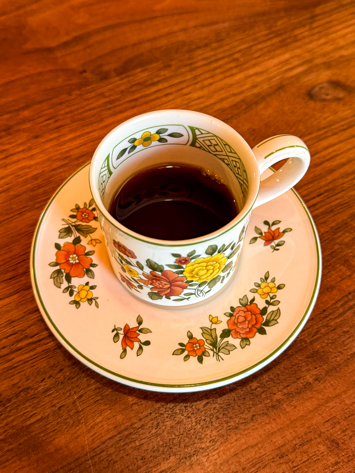고토커피바에 갔던 날 마셨던 핸드드립 커피는 밀크초콜릿, 핵과류, 라즈베리가 첨가된 에티오피아 내츄럴 넨세보로 산미가 가득한 맛이었으며 스페셜티 필터커피답게 특유의 향이 감돌아 색다른 맛이 느껴지며 찻잔에 직접 따라 마실 수 있어서 더 고급스러웠다.