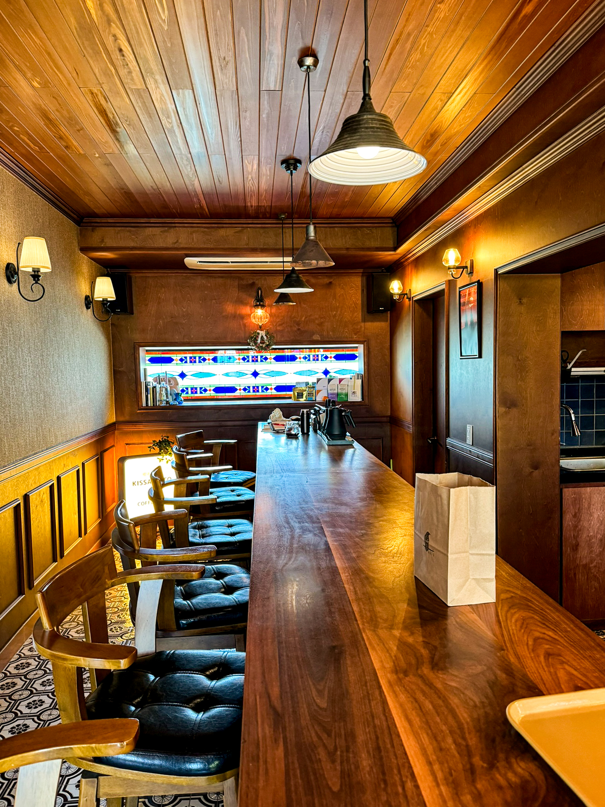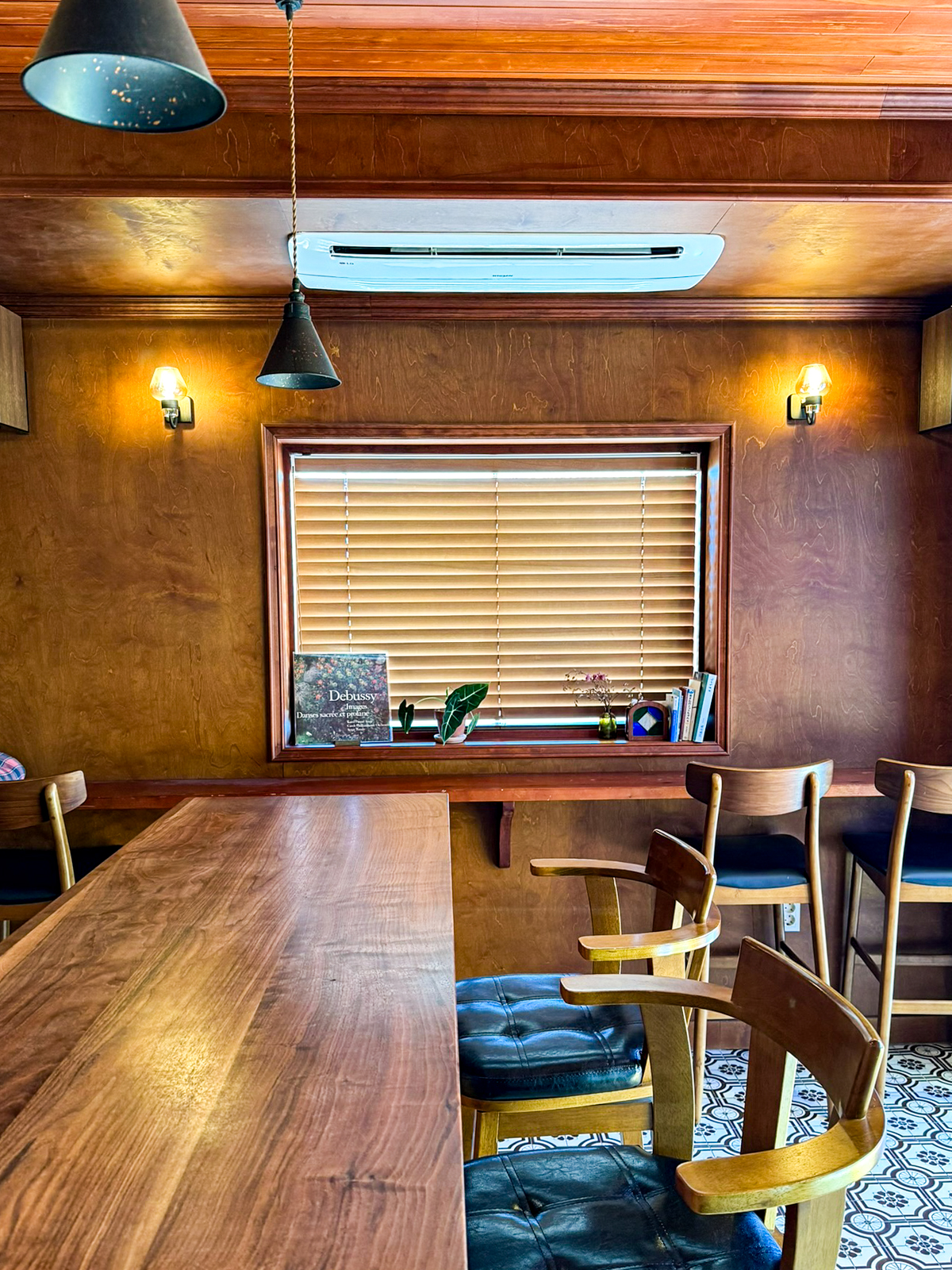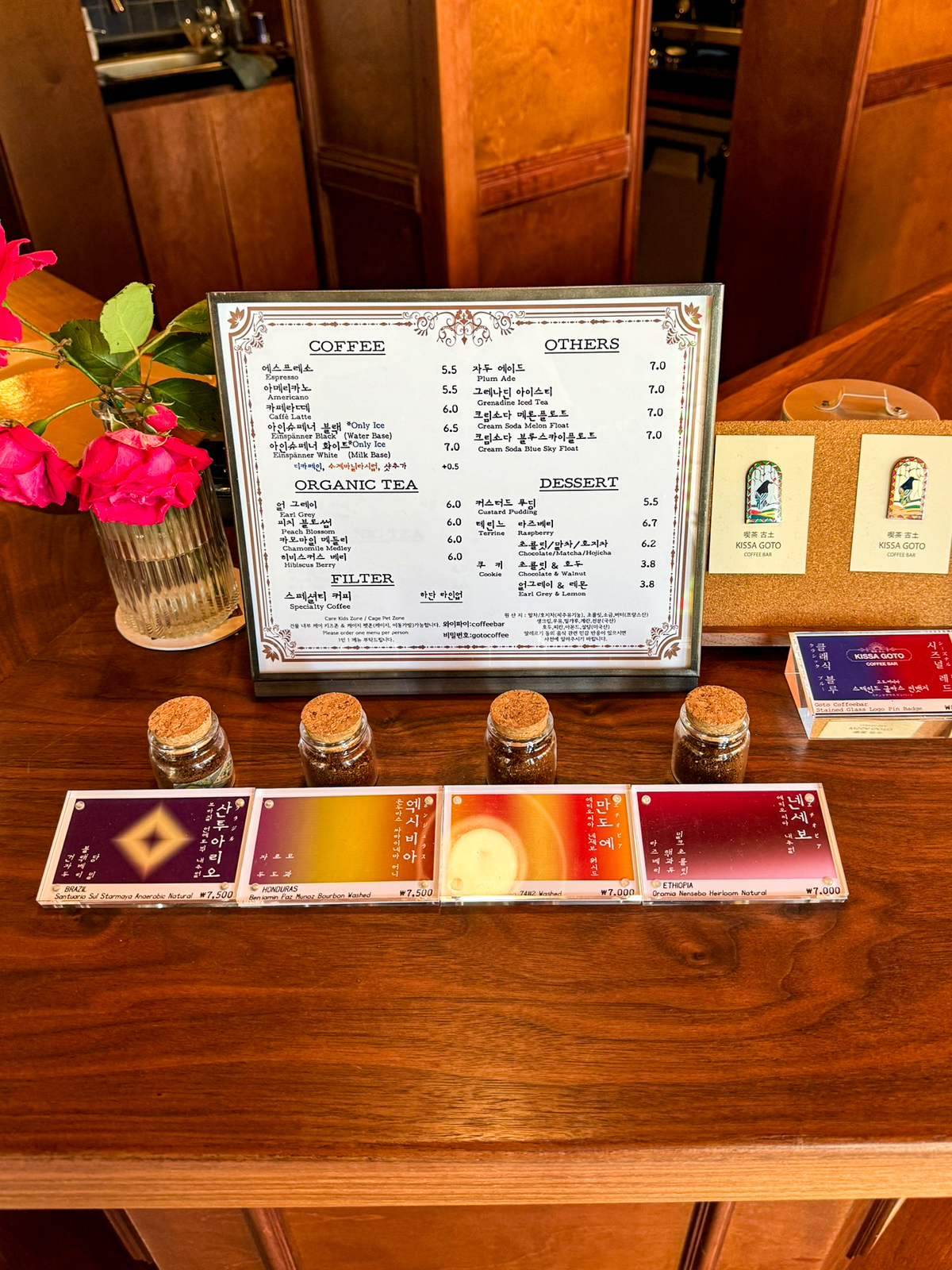 정원을 지나 문을 열고 내부로 들어가면 전체적으로 아늑하면서 일본의 한 카페를 연상시키는 분위기가 느껴졌고 함께 간 이들과 나란히 앉아 커피를 마실 수 있는 바 테이블이 갖춰져 있다.
