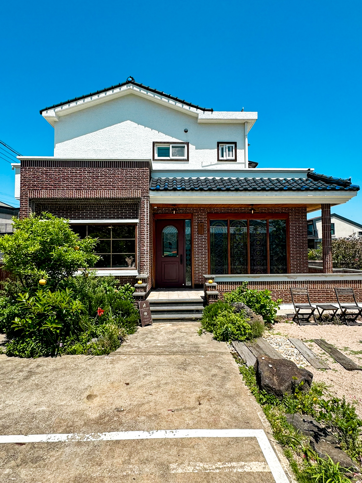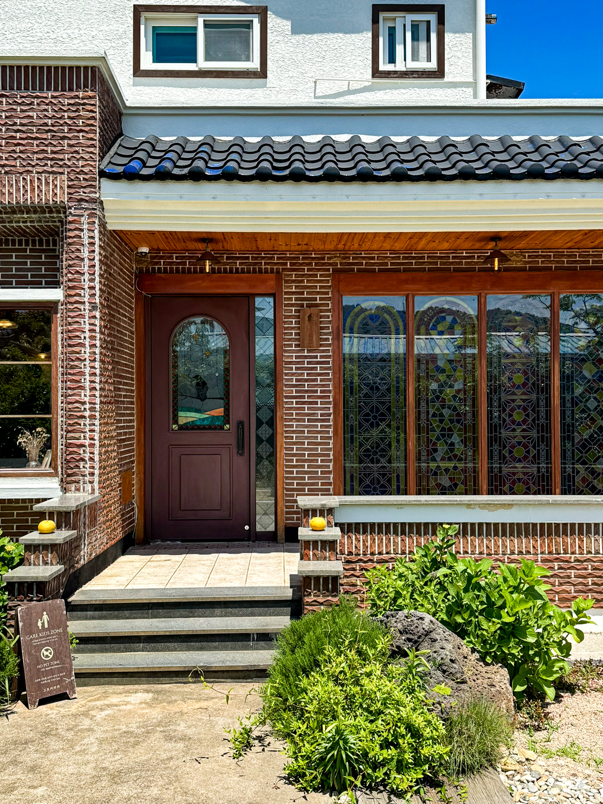 오래전 벽돌 가정집을 개조하여 운영되고 있는 제주 애월 카페 고토커피바는 대문을 열고 들어가면 봄, 여름철에 만나볼 수 있는 꽃이 가득한 정원이 먼저 보인다.