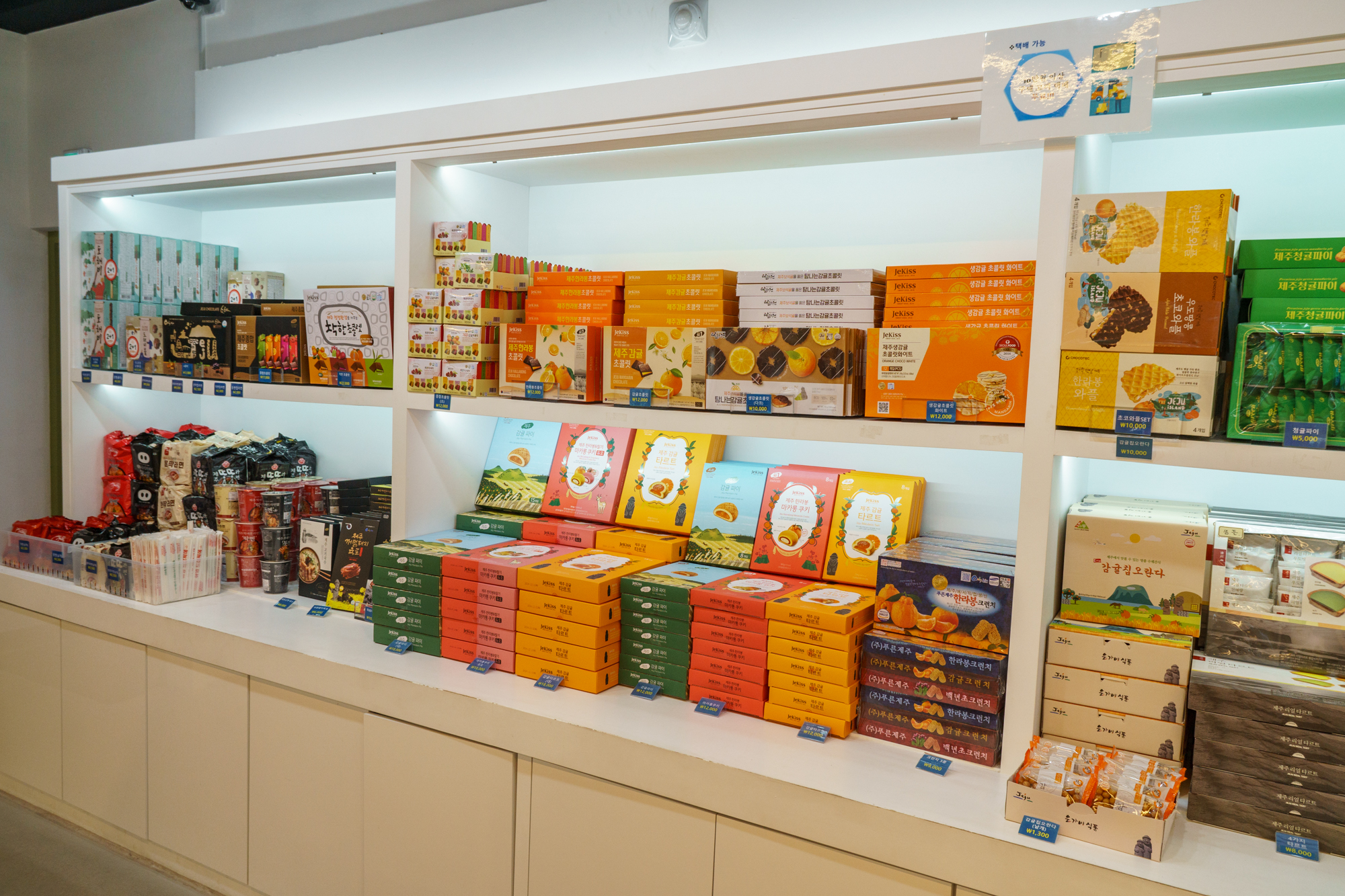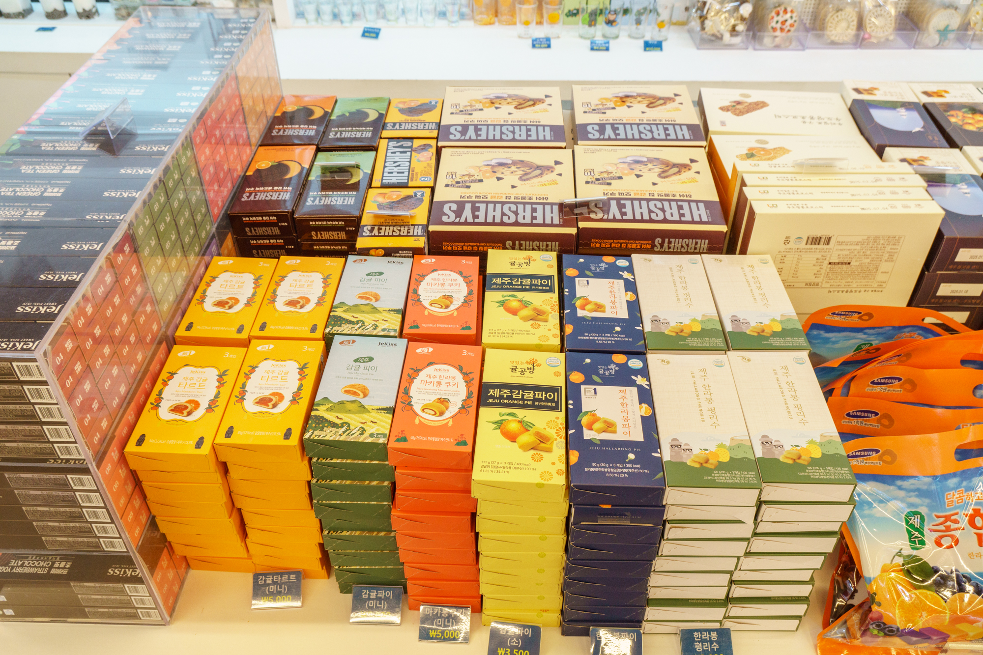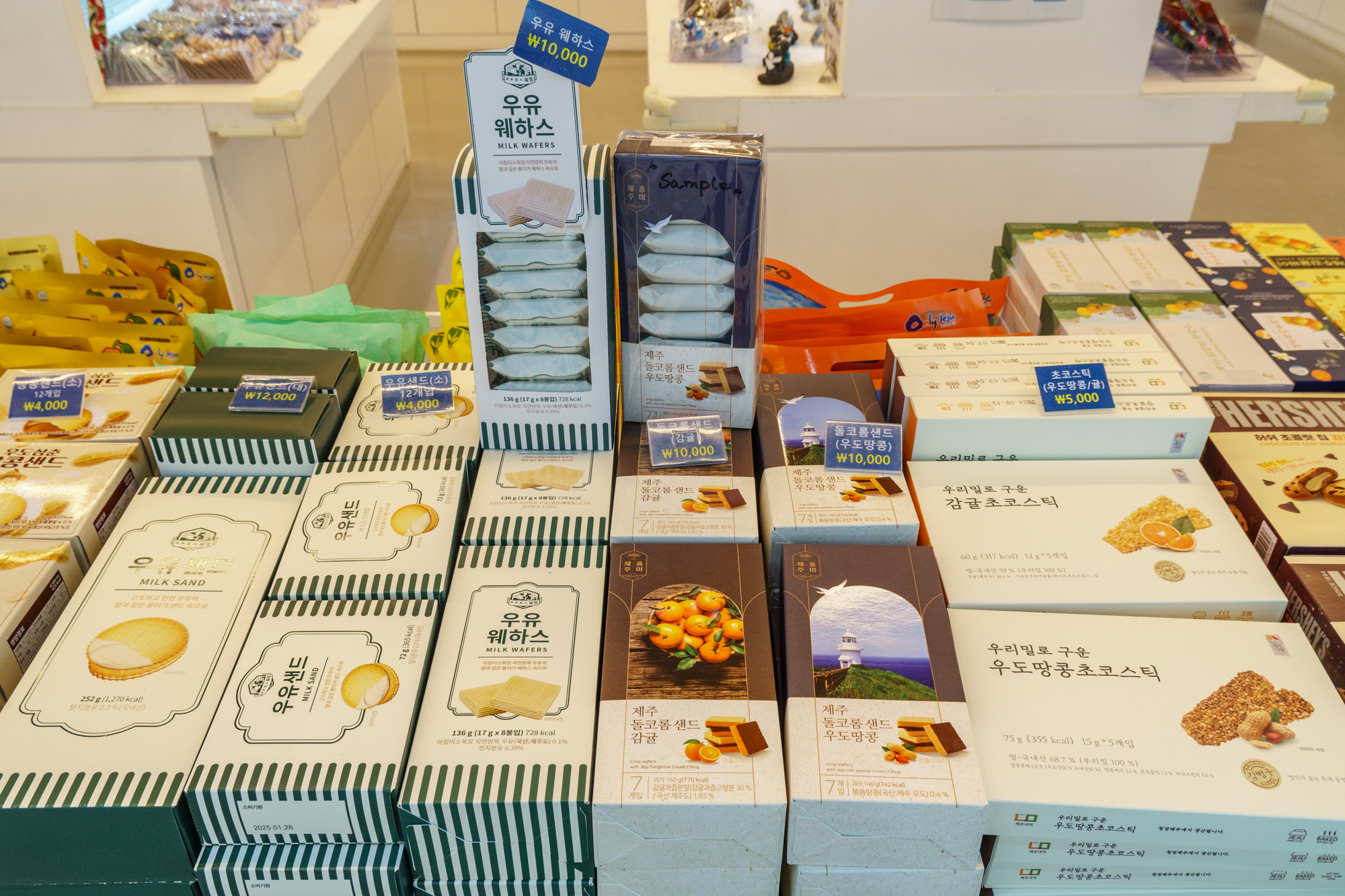 매장 안쪽으로는 제주도 기념품 선물로 추천하고 싶은 먹거리가 가득했는데 많은 분들이 아는 제주 초콜릿이 아닌 쿠키, 타르트, 파이, 와플 등 제주도만의 간식 상품이 가득 있다.