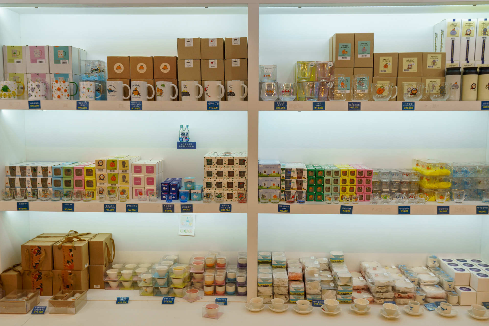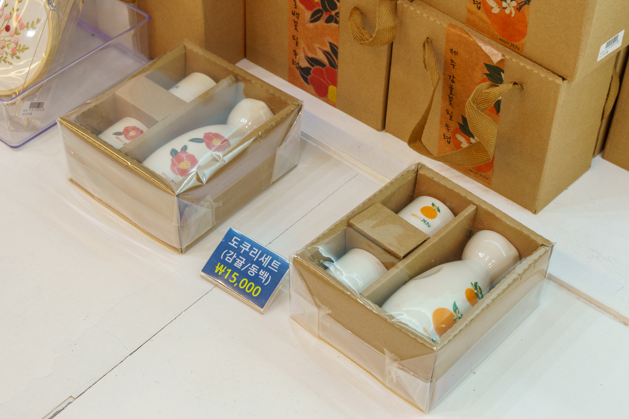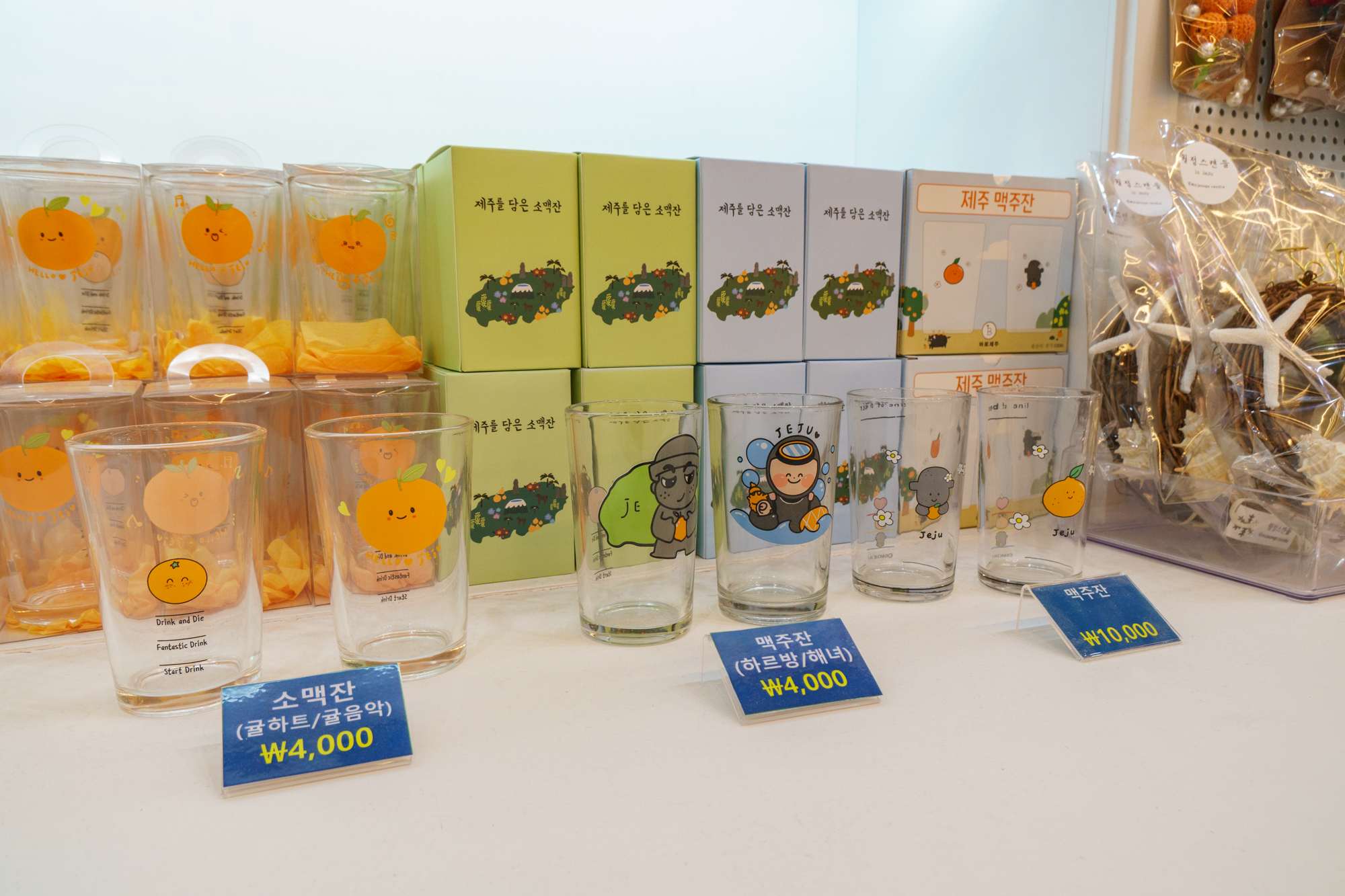 그중 눈길을 끈 기념품으로 에이드잔, 소맥잔, 변색고래잔이 있었고 제주도를 대표하는 감귤과 동백꽃을 담은 도쿠리세트도 있는데 선물을 받는 이라면 누구나 좋아할 만한 감성 가득한 디자인을 자랑했다.